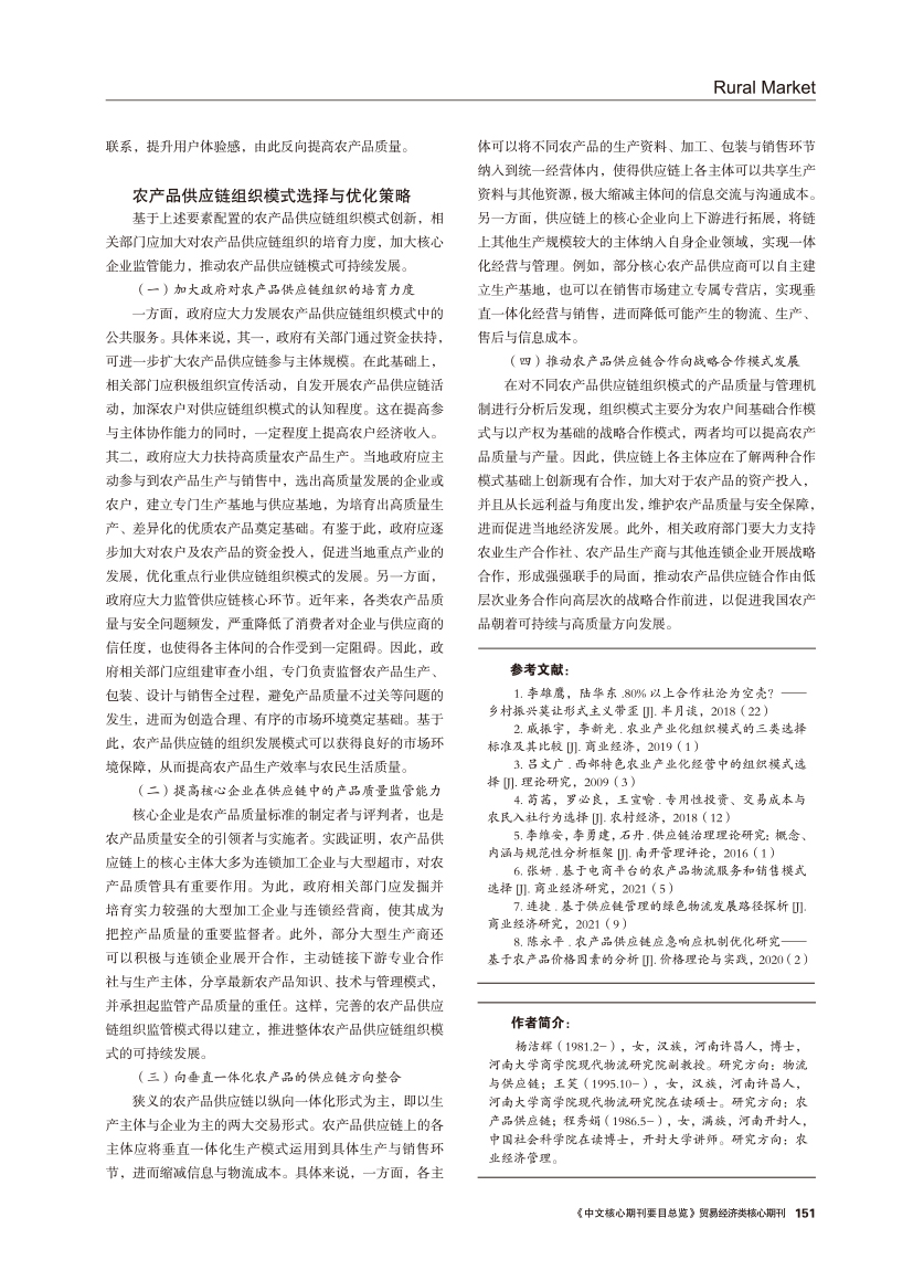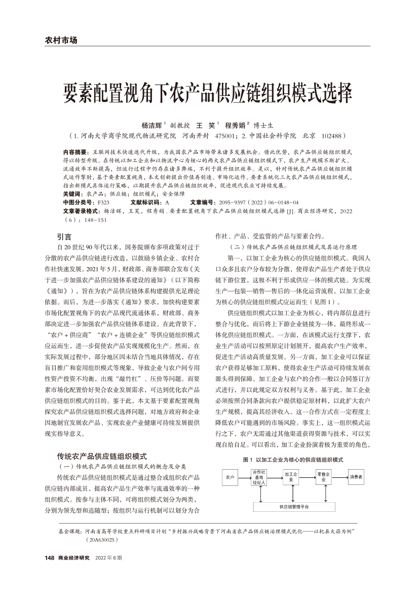 | 要素配置视角下农产品供应链组织模式选择 |