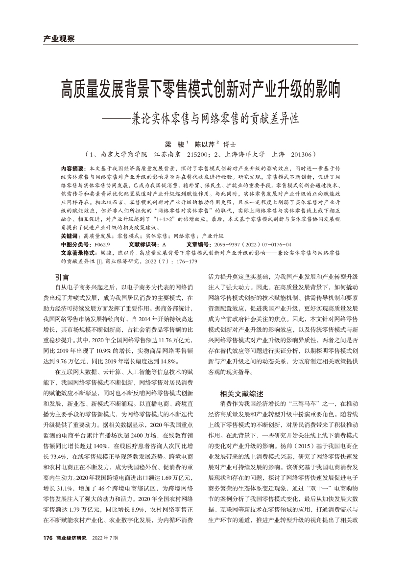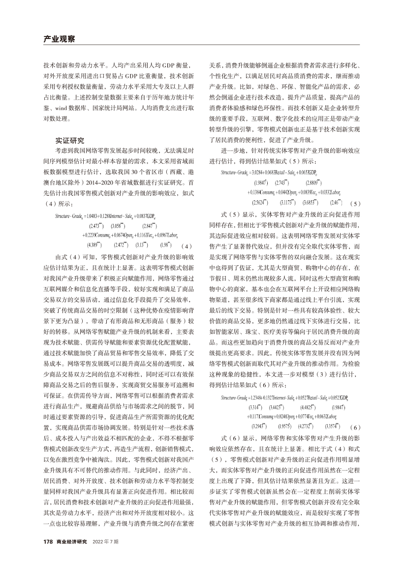| 高质量发展背景下零售模式创新对产业升级的影响 ——兼论实体零售与网络零售的贡献差异性 |