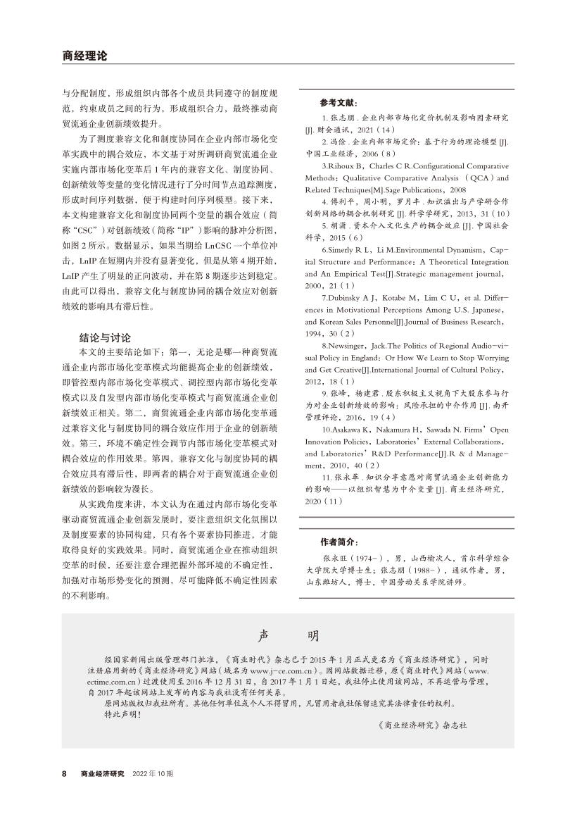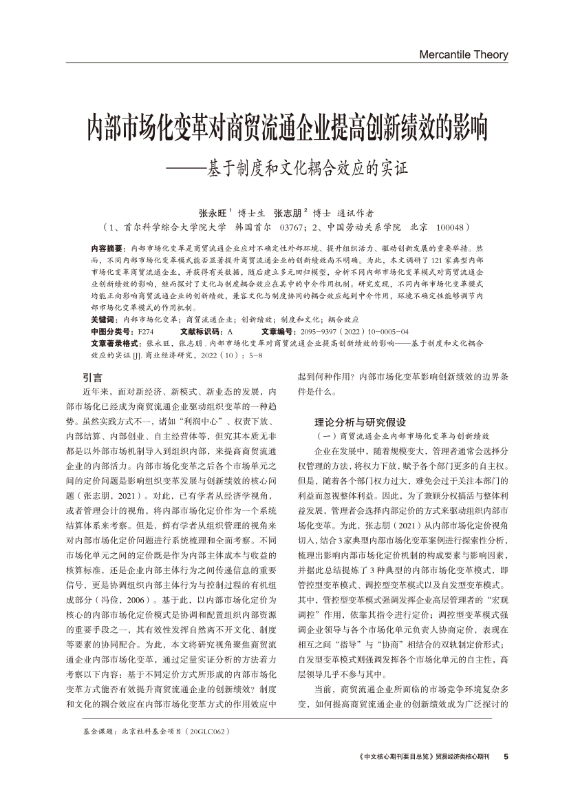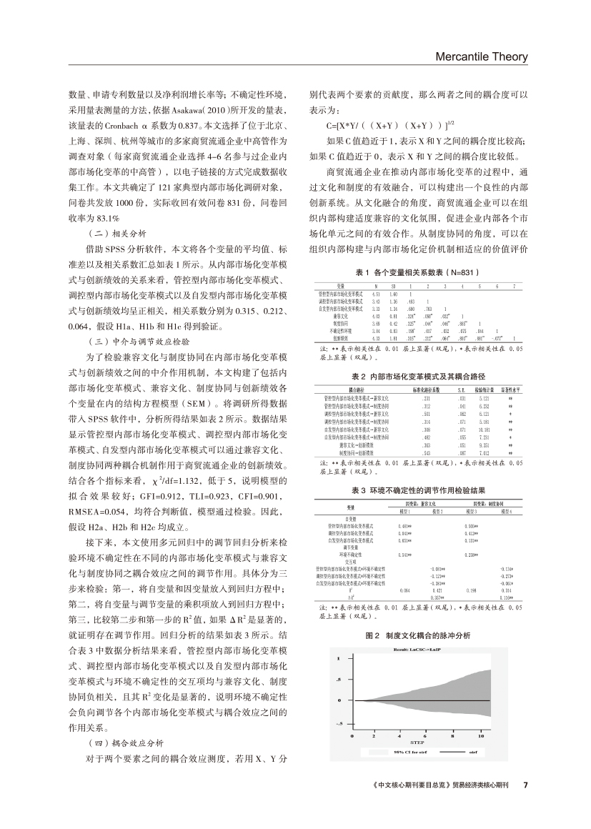 | 内部市场化变革对商贸流通企业提高创新绩效的影响 ——基于制度和文化耦合效应的实证 |