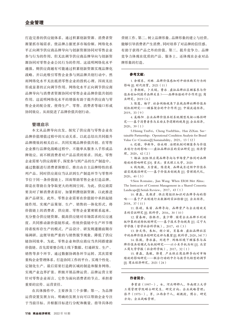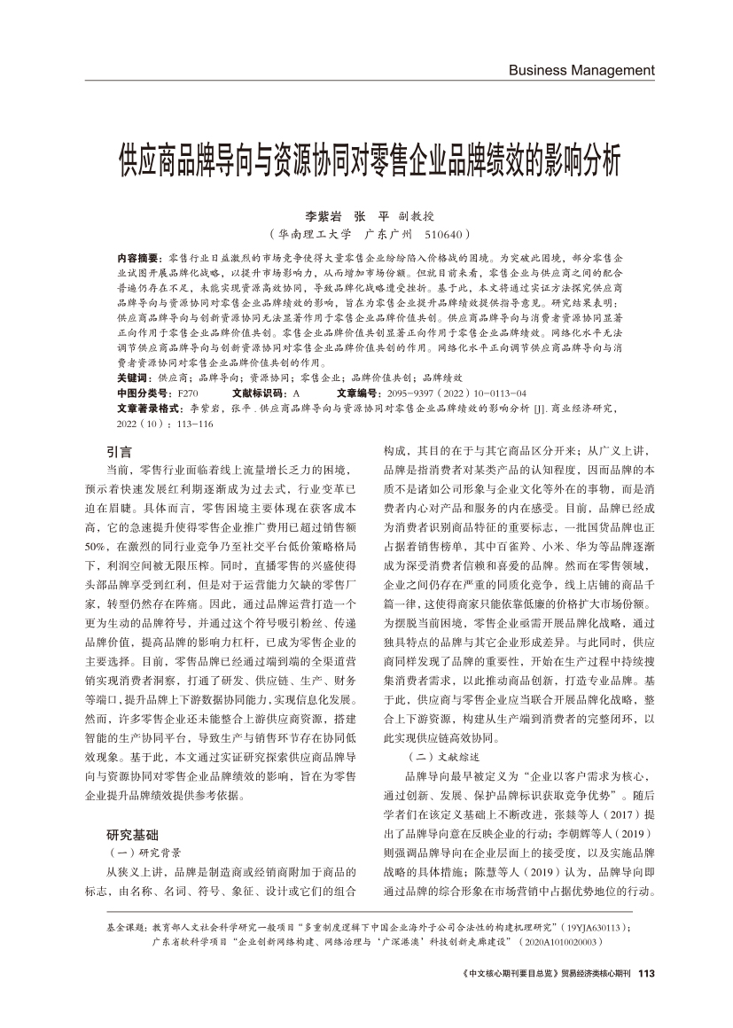 | 供应商品牌导向与资源协同对零售企业品牌绩效的影响分析 |