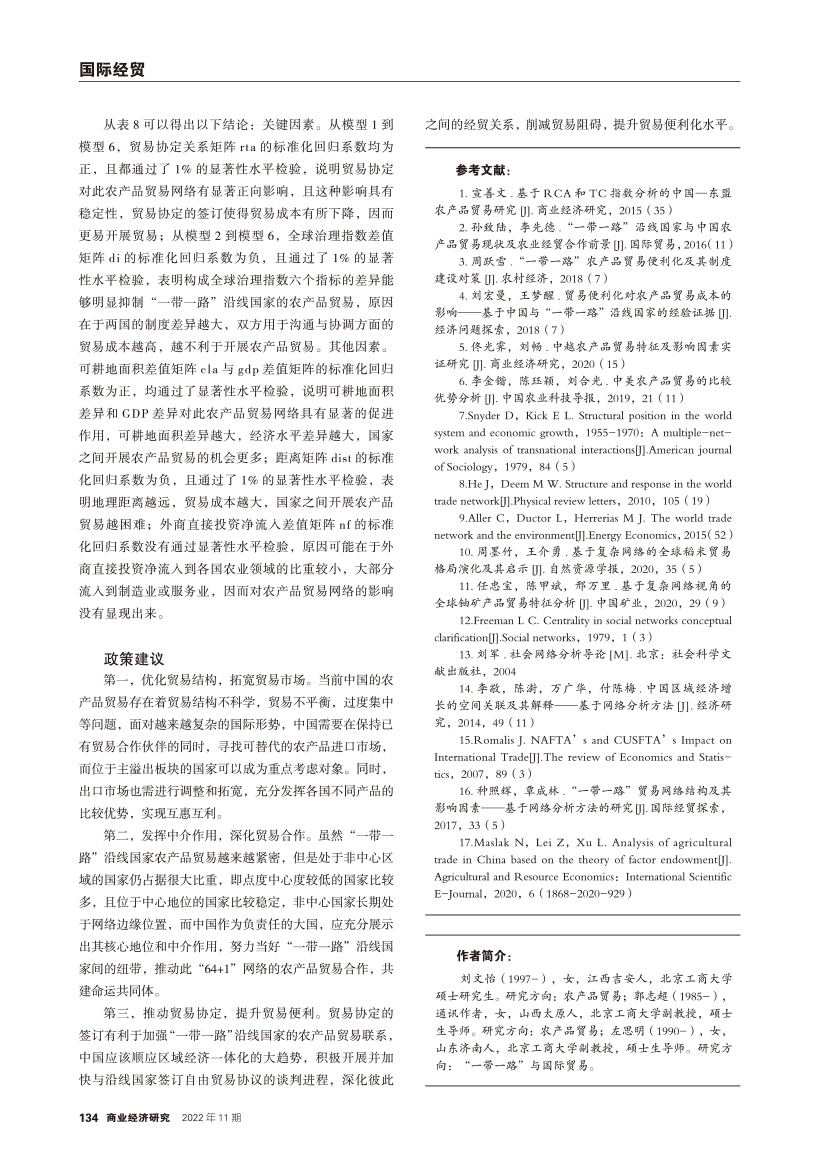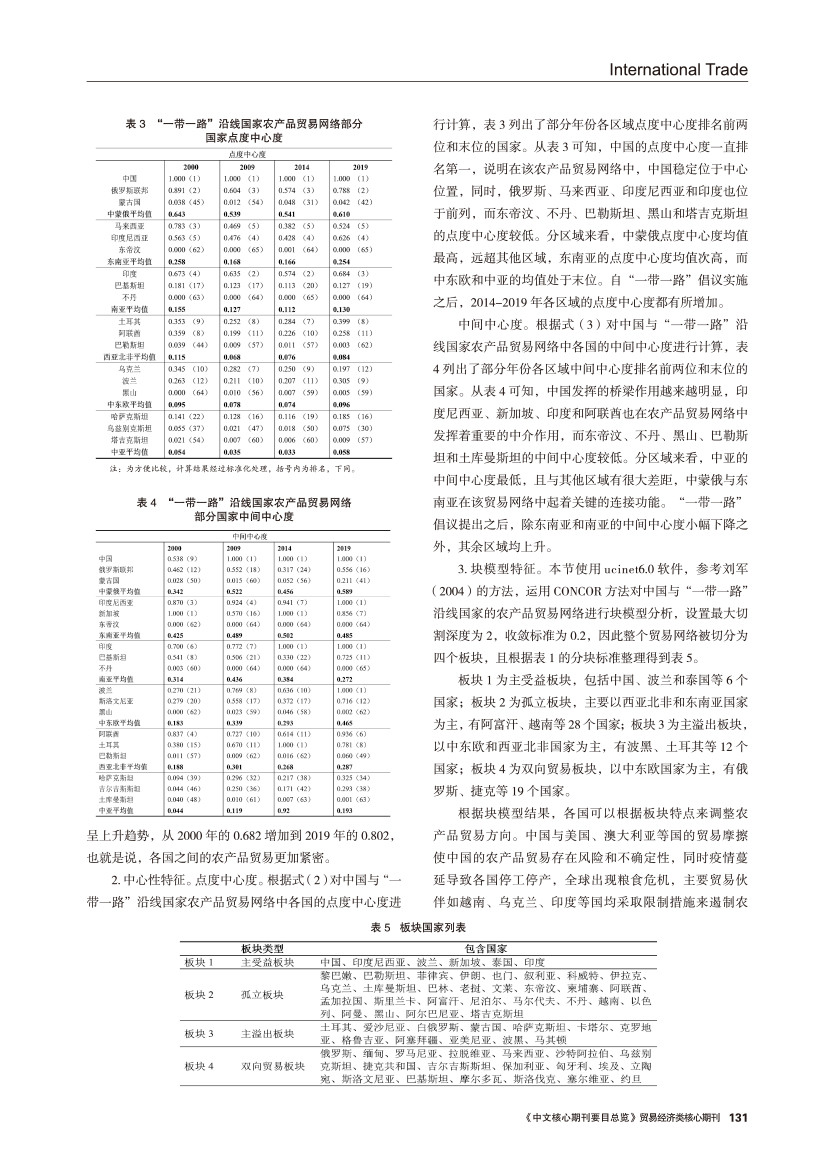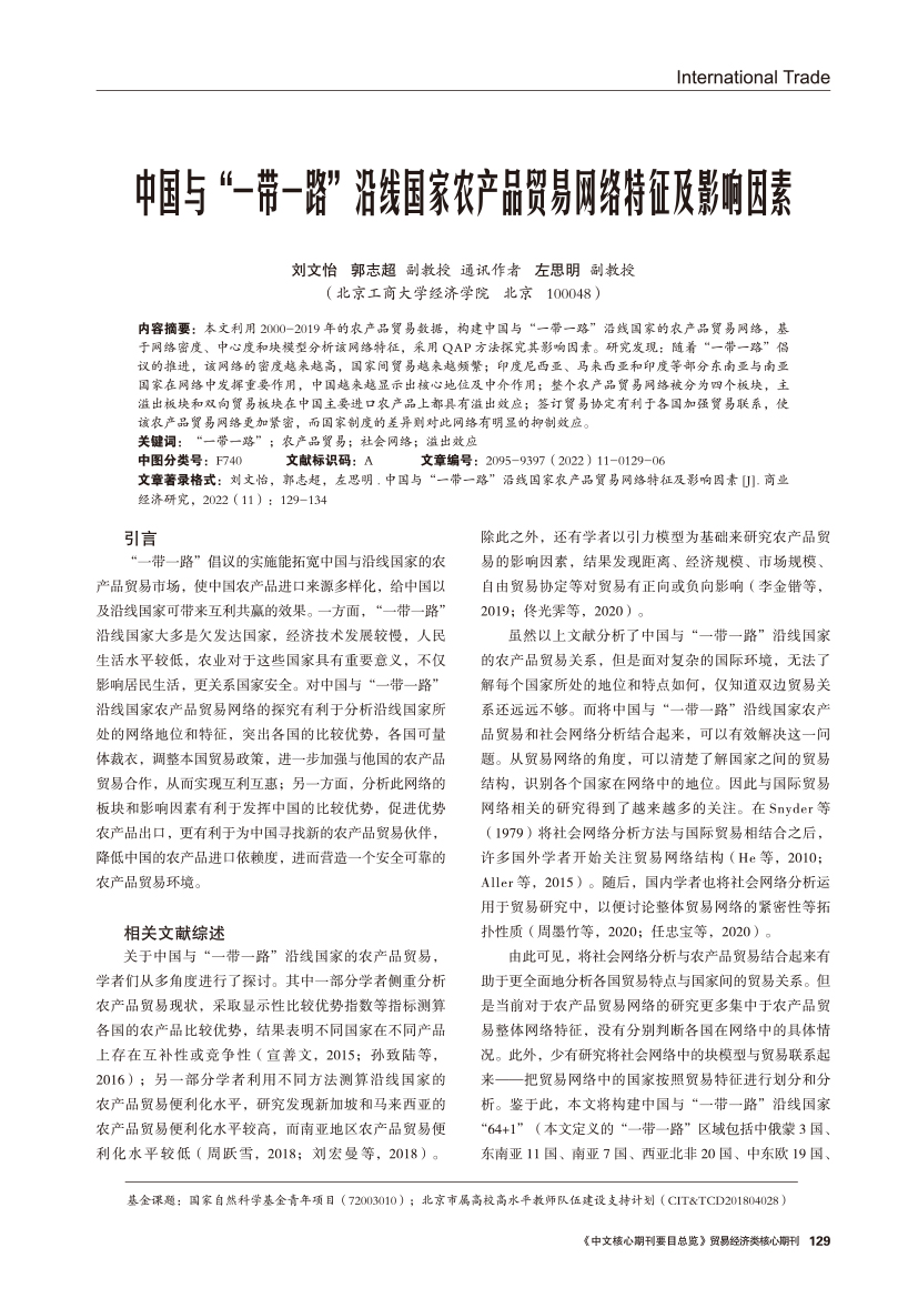 | 中国与“一带一路”沿线国家农产品贸易网络特征及影响因素 |