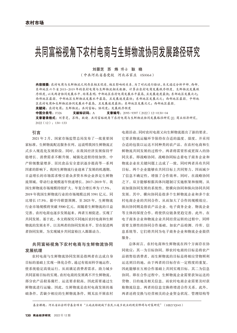 | 共同富裕视角下农村电商与生鲜物流协同发展路径研究 |