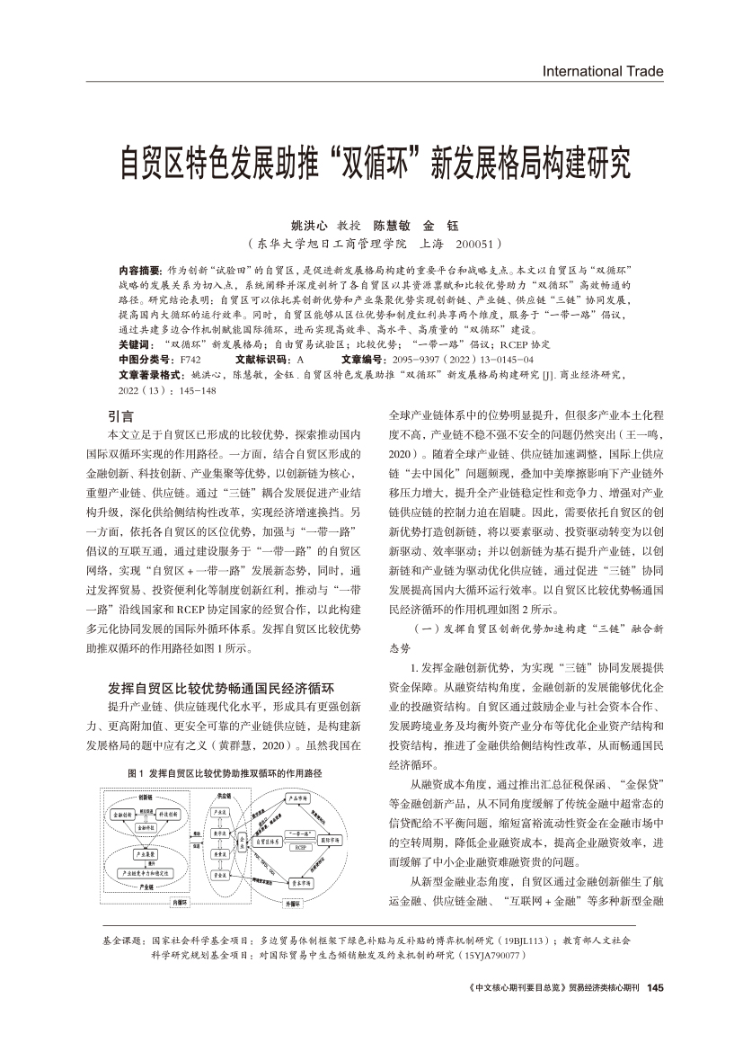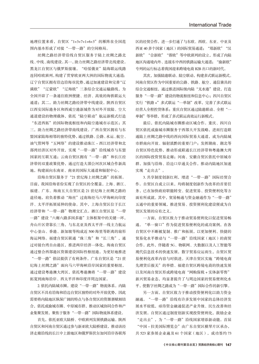 | 自贸区特色发展助推“双循环”新发展格局构建研究 |