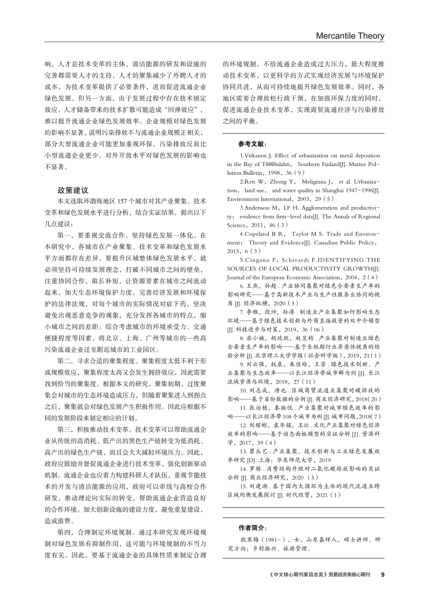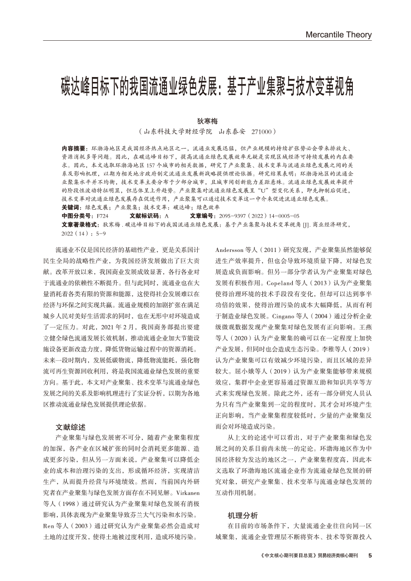 | 碳达峰目标下的我国流通业绿色发展:基于产业集聚与技术变革视角 |