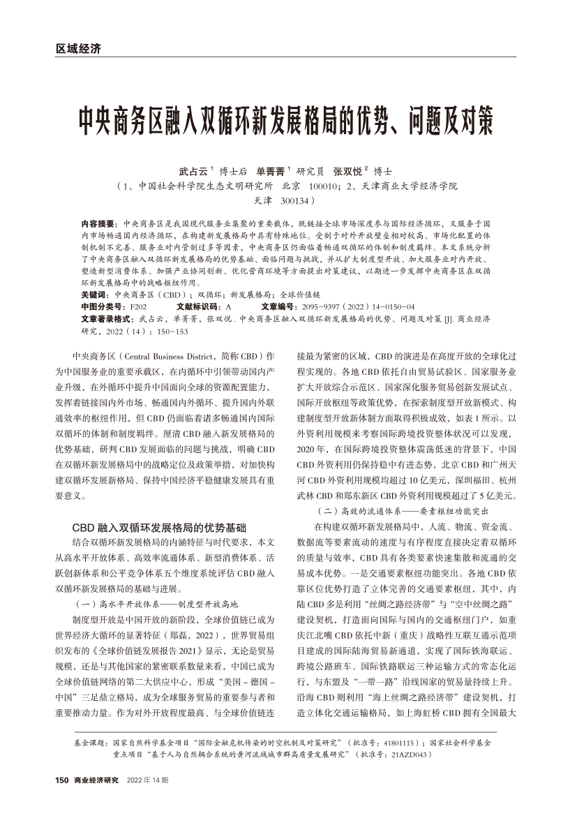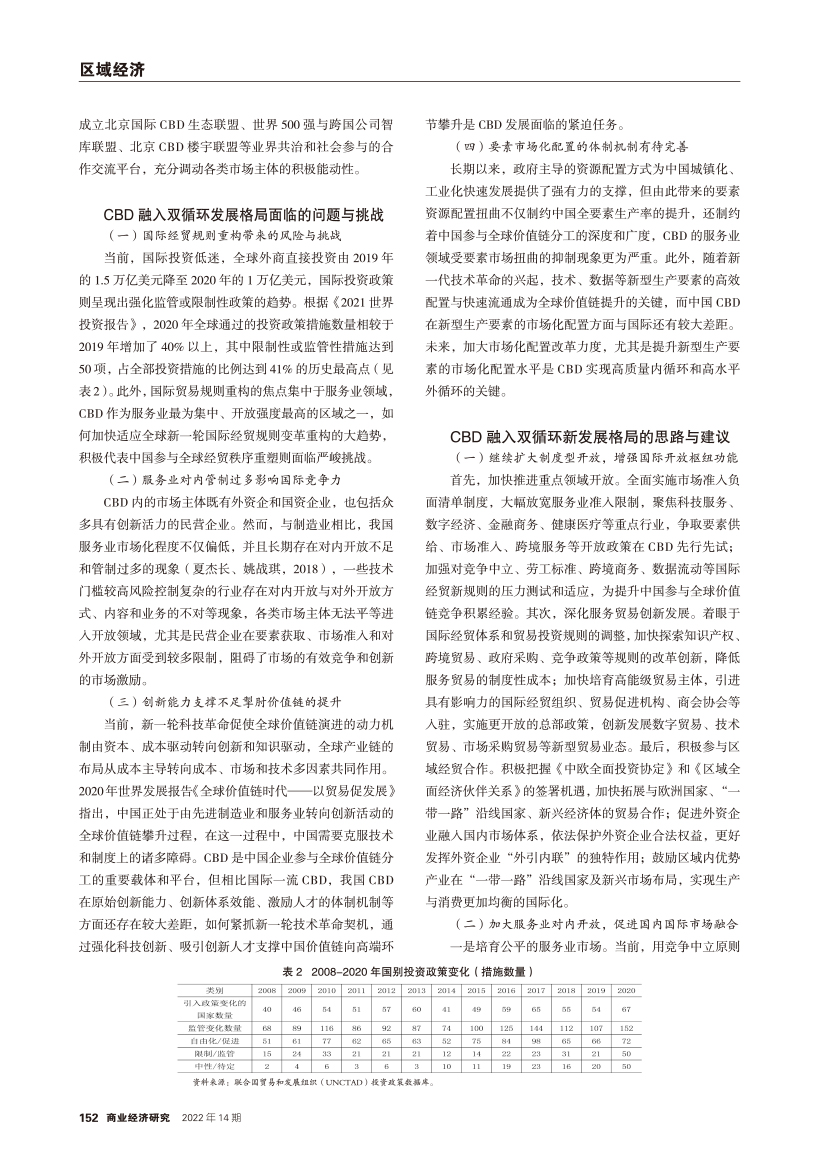 | 中央商务区融入双循环新发展格局的优势、问题及对策 |