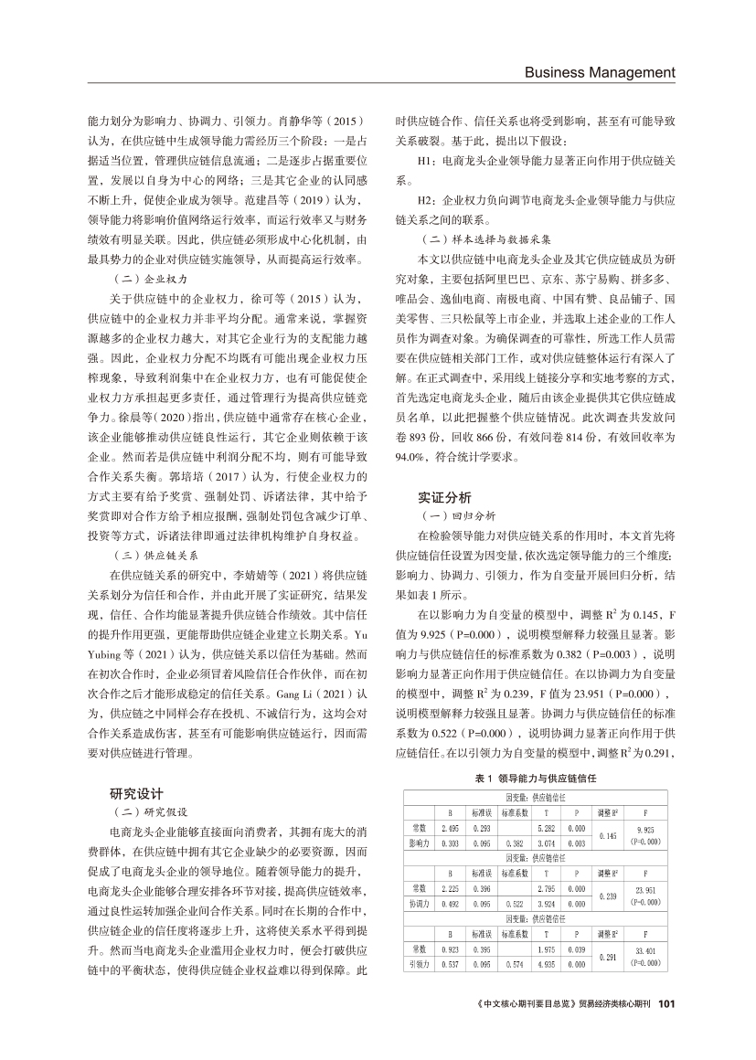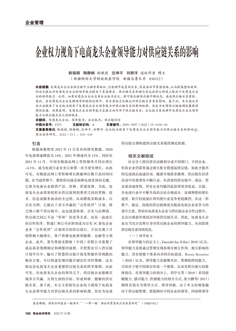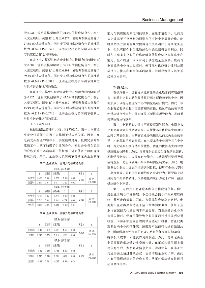 | 企业权力视角下电商龙头企业领导能力对供应链关系的影响 |