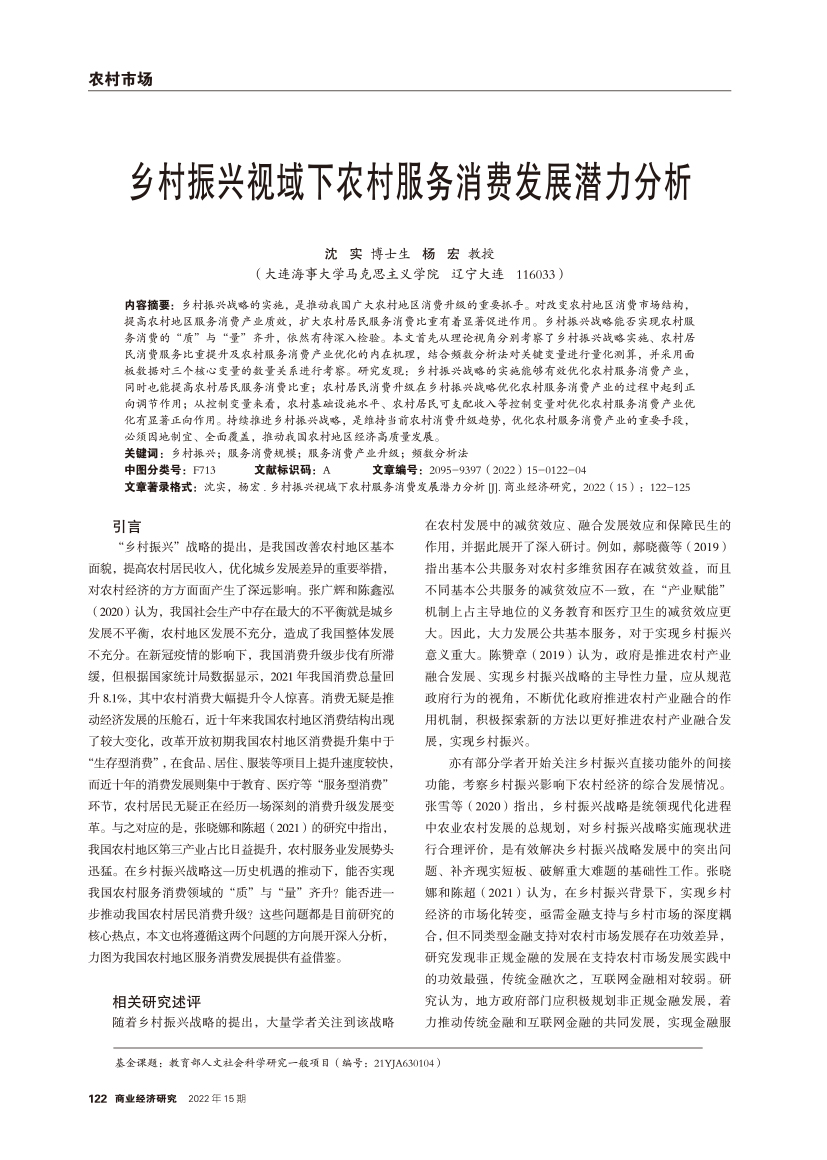 | 乡村振兴视域下农村服务消费发展潜力分析 |