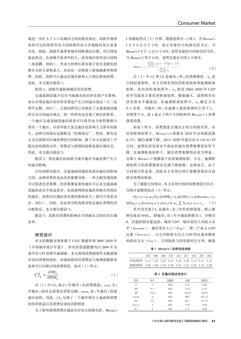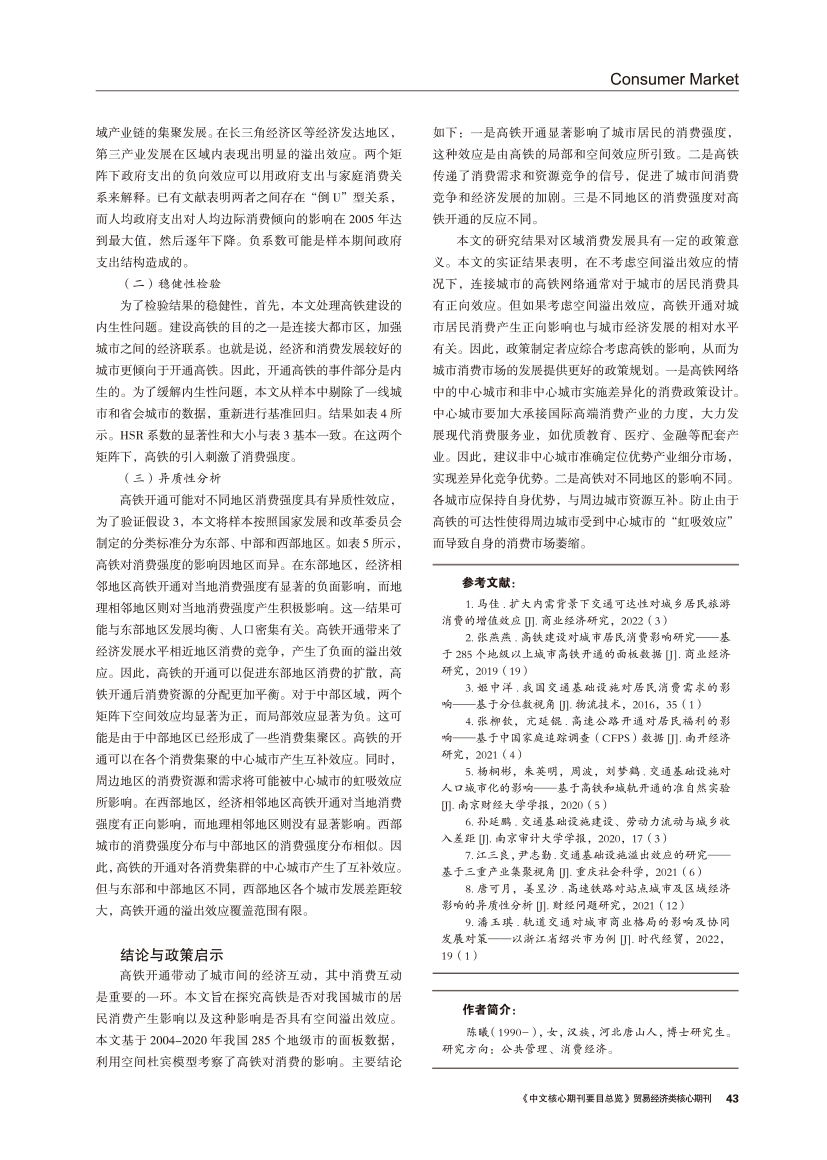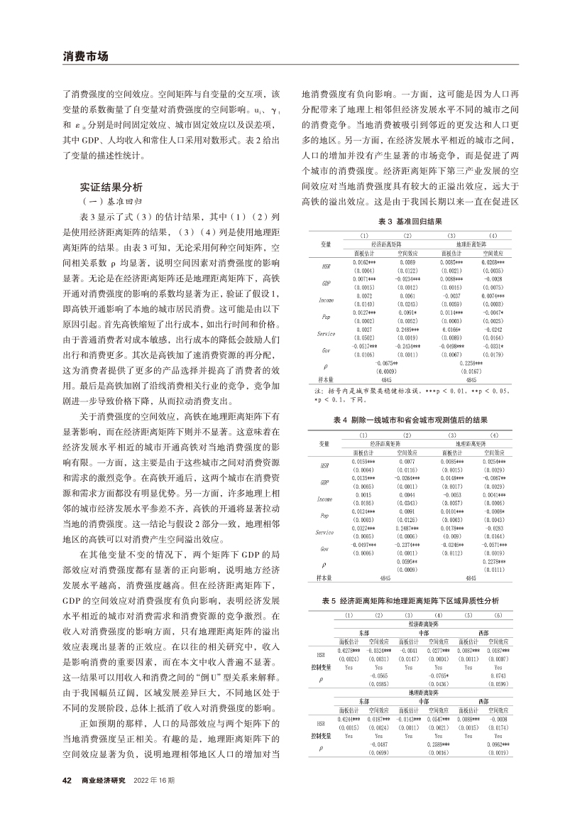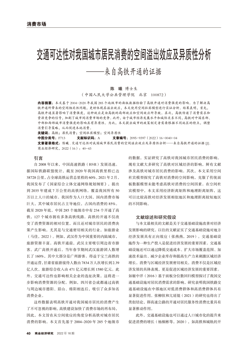 | 交通可达性对我国城市居民消费的空间溢出效应及异质性分析 ——来自高铁开通的证据 |