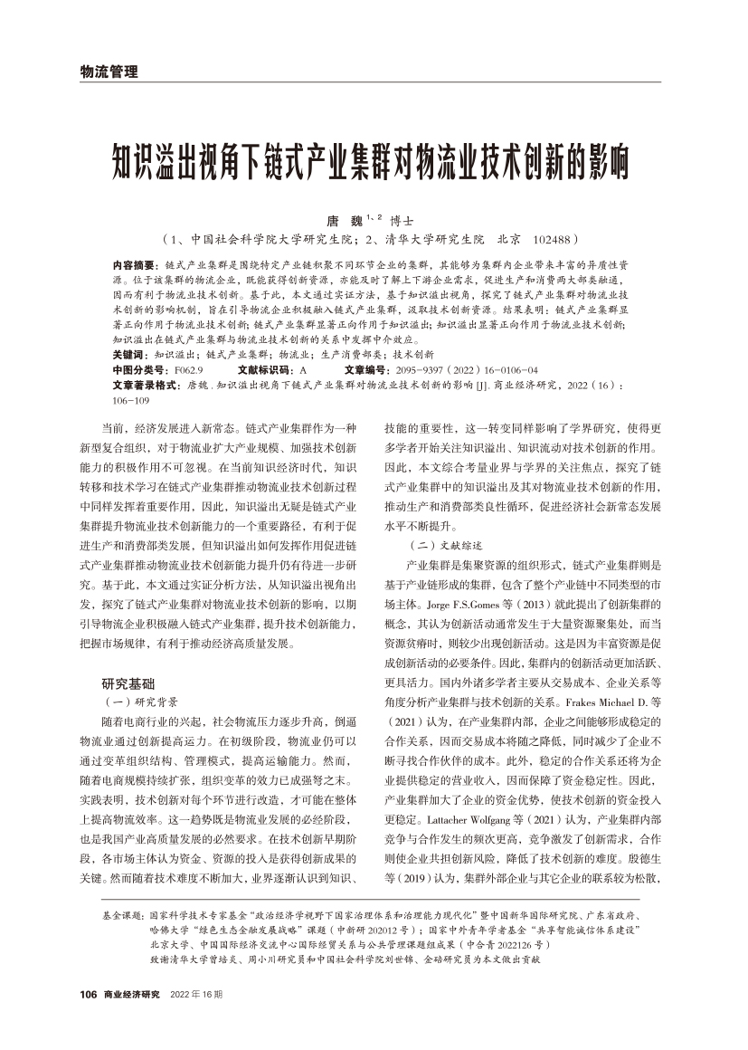 | 知识溢出视角下链式产业集群对物流业技术创新的影响 |