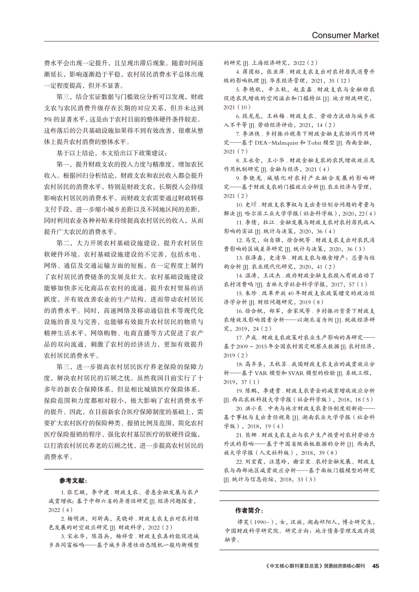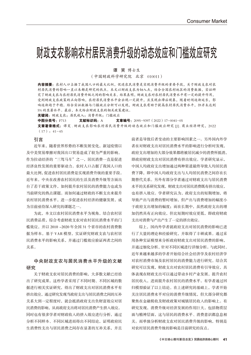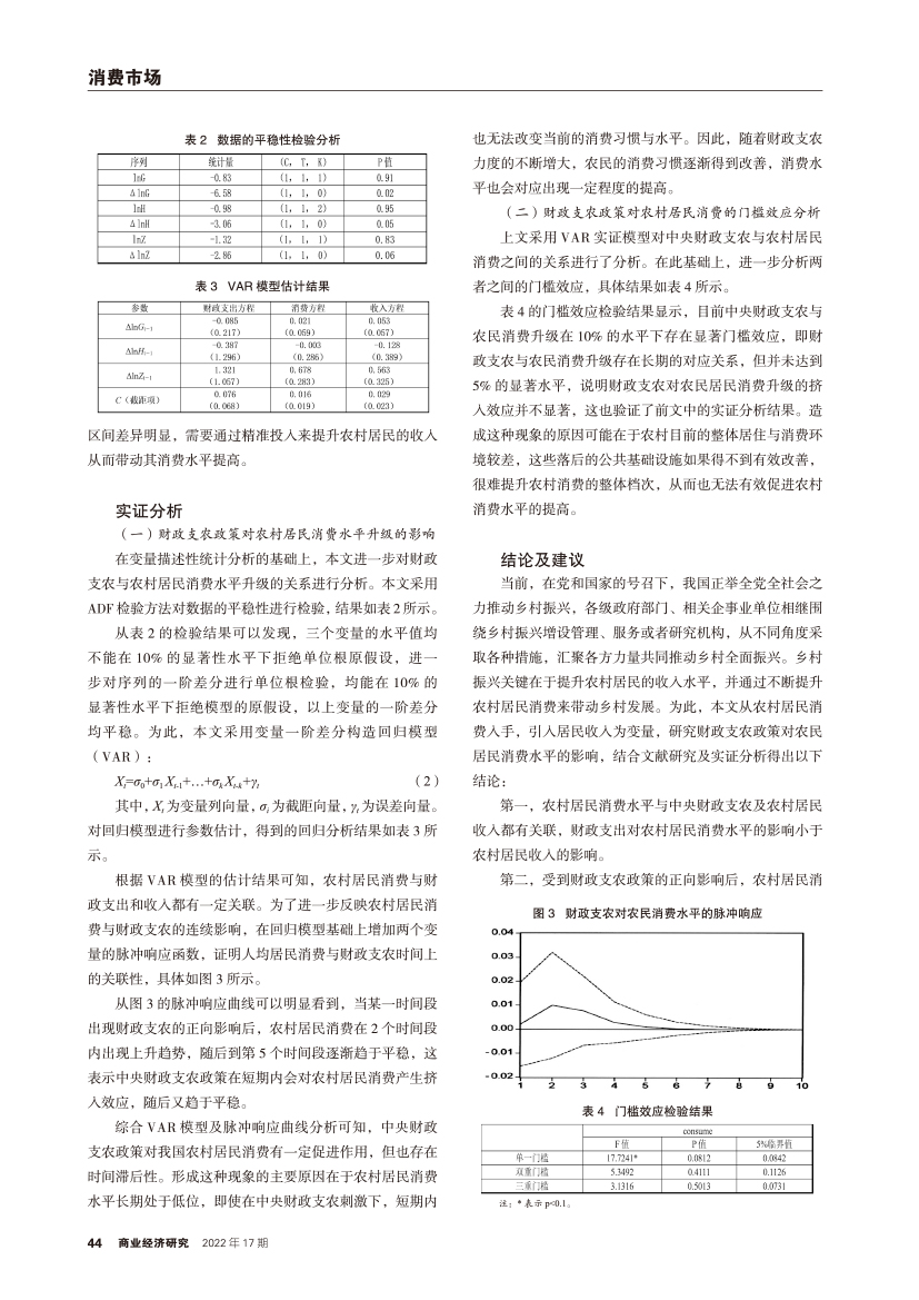 | 财政支农影响农村居民消费升级的动态效应和门槛效应研究 |
