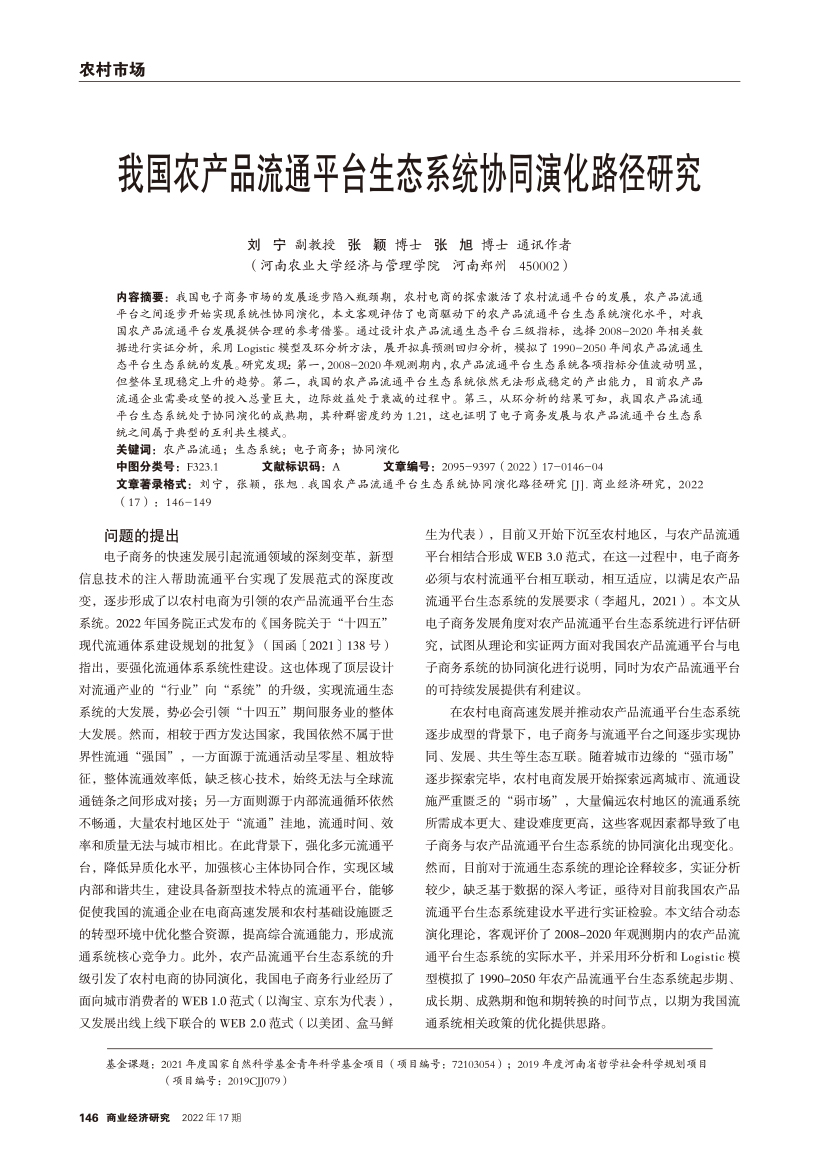 | 我国农产品流通平台生态系统协同演化路径研究 |