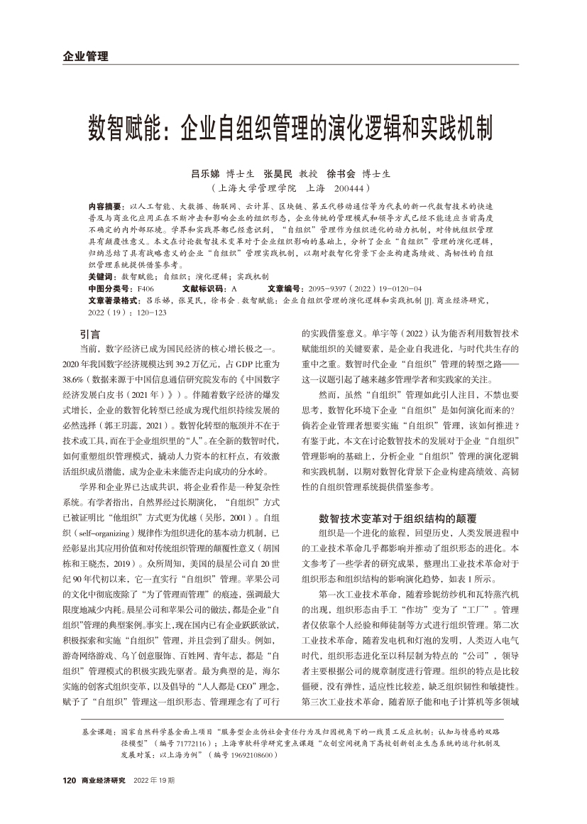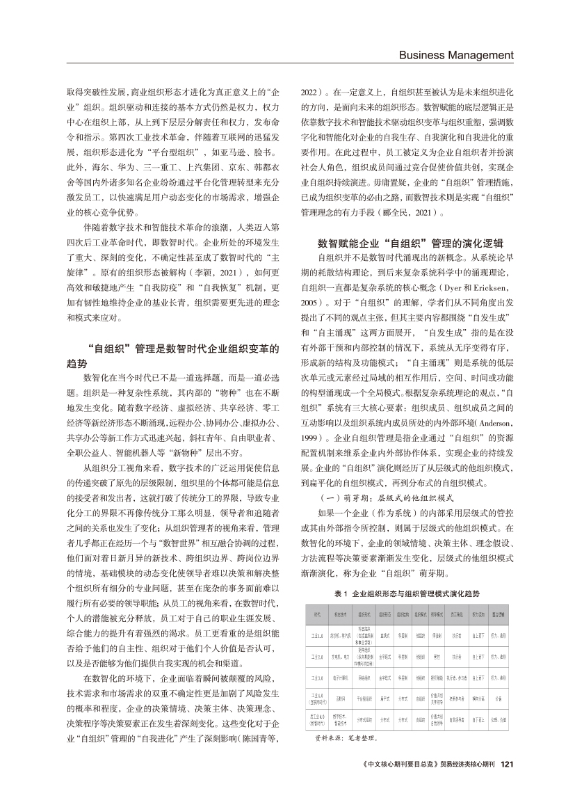 | 数智赋能:企业自组织管理的演化逻辑和实践机制 |