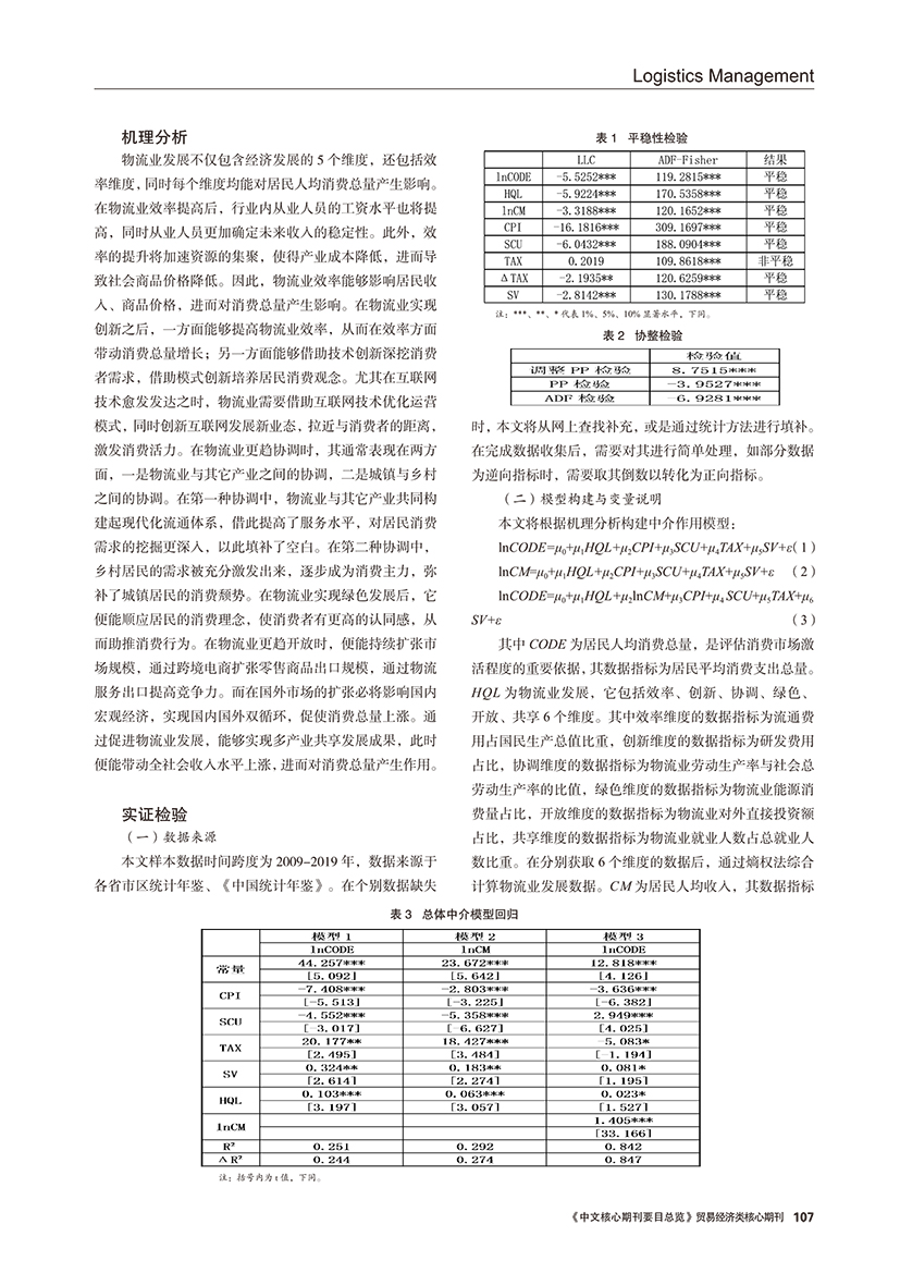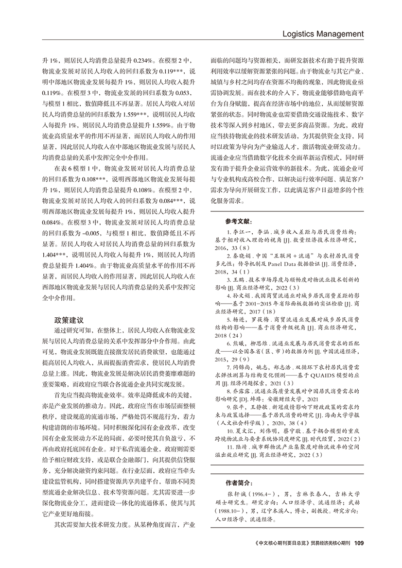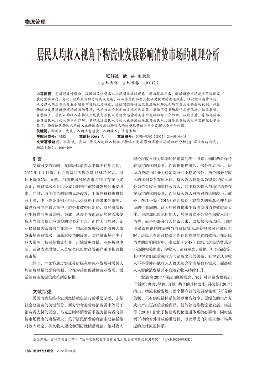 | 居民人均收入视角下物流业发展影响消费市场的机理分析 |