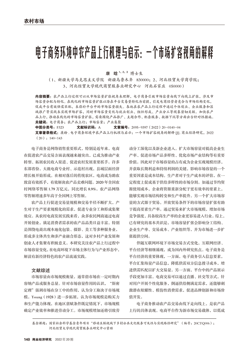 | 电子商务环境中农产品上行机理与启示:一个市场扩容视角的解释 |