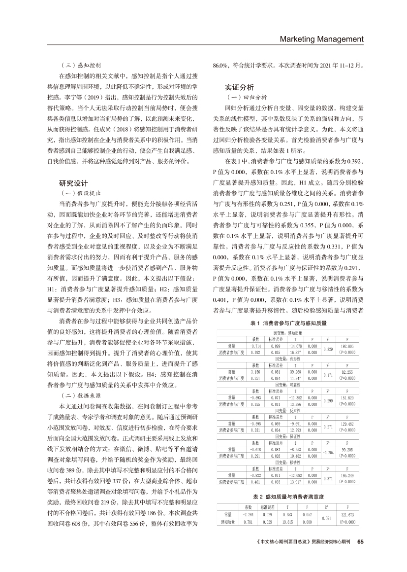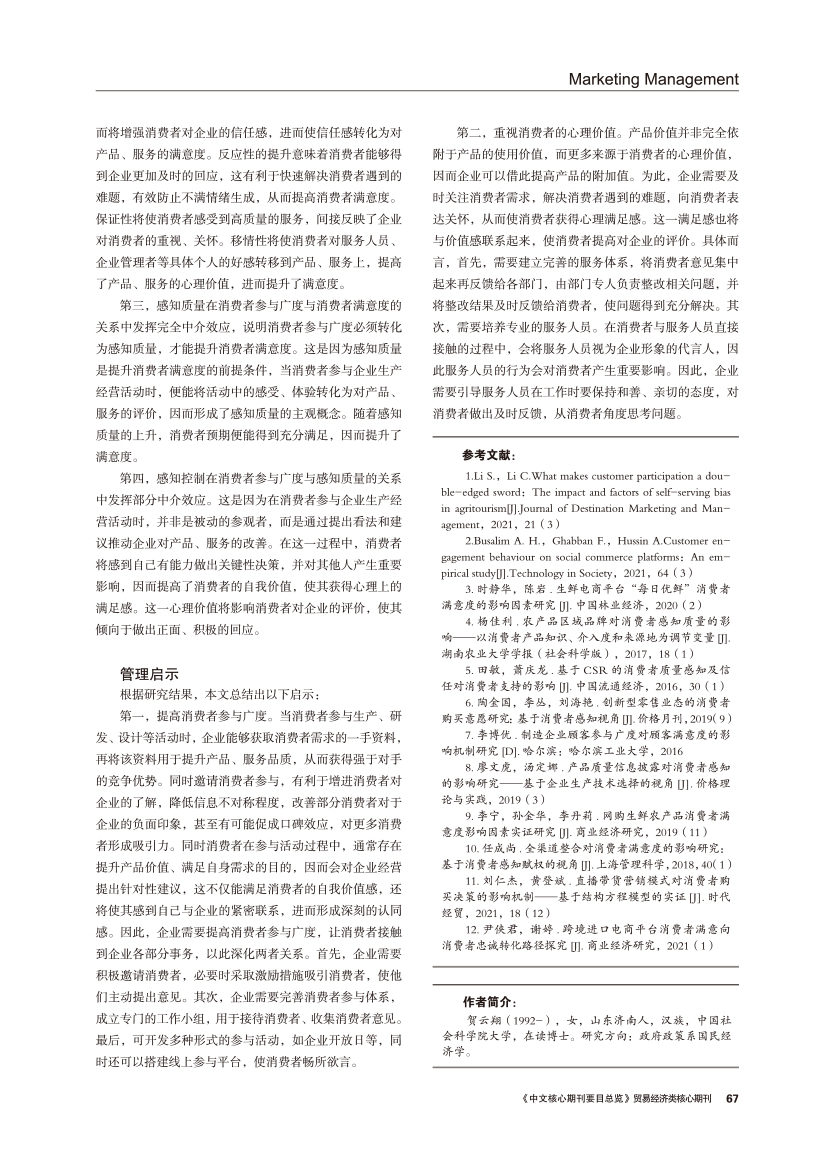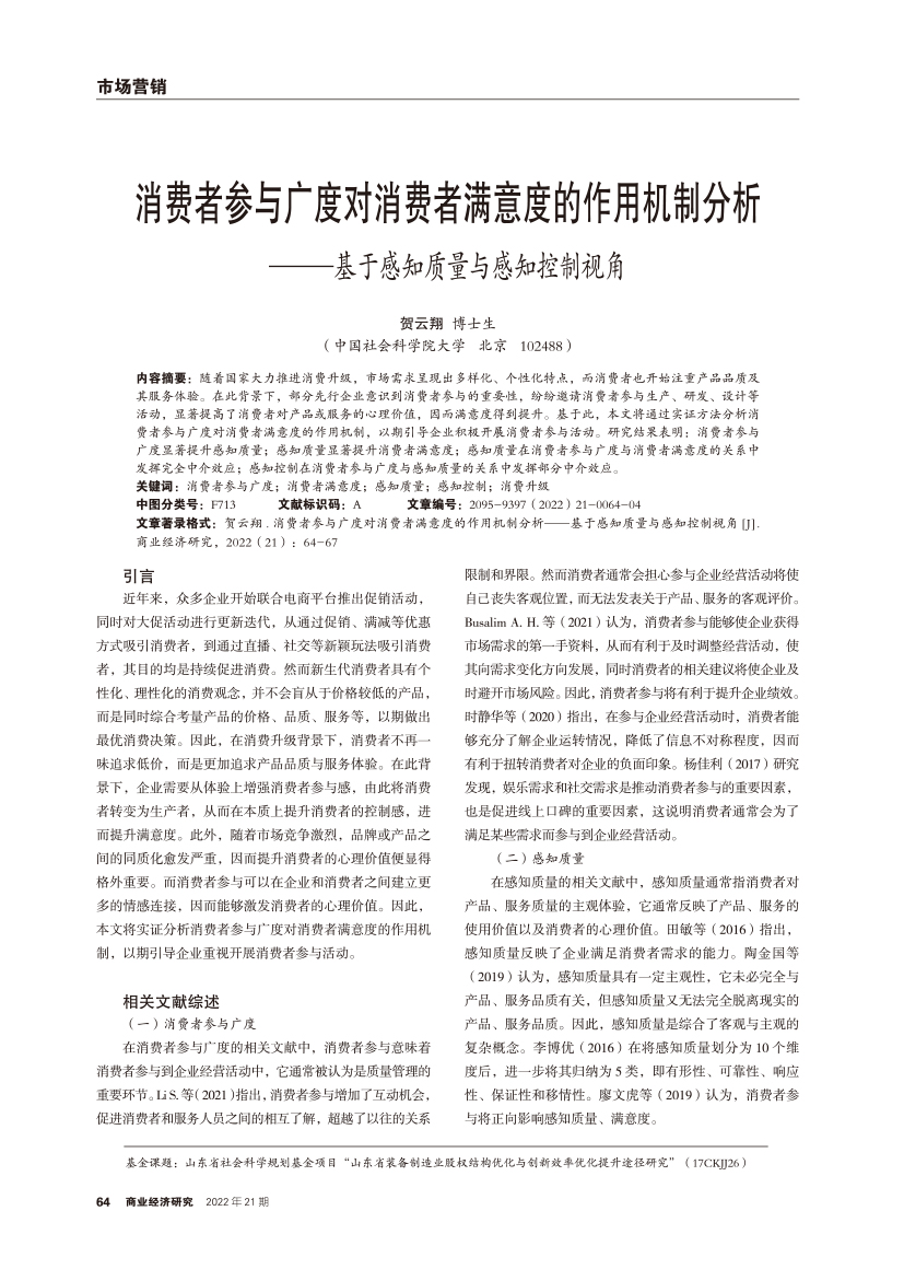 | 消费者参与广度对消费者满意度的作用机制分析 ——基于感知质量与感知控制视角 |