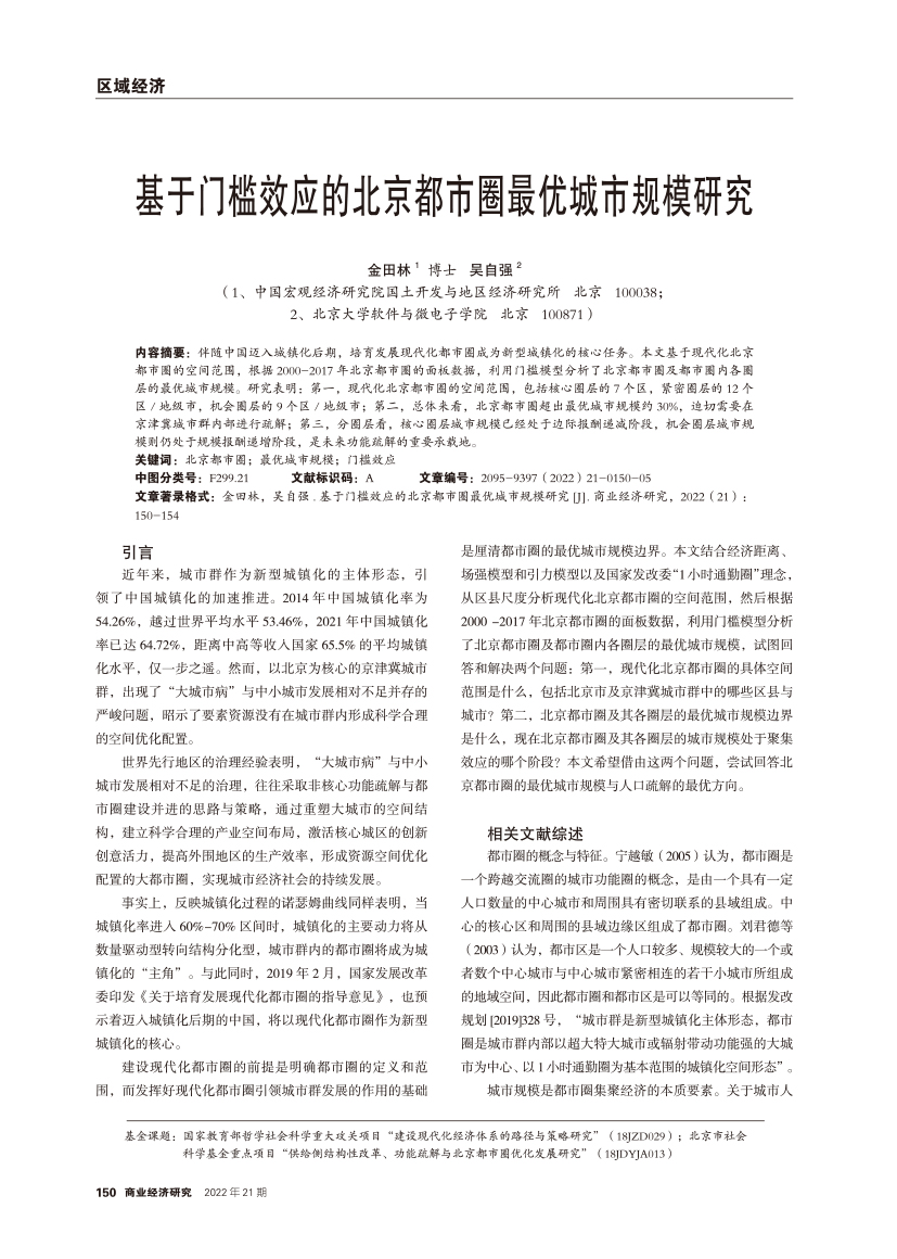 | 基于门槛效应的北京都市圈最优城市规模研究 |