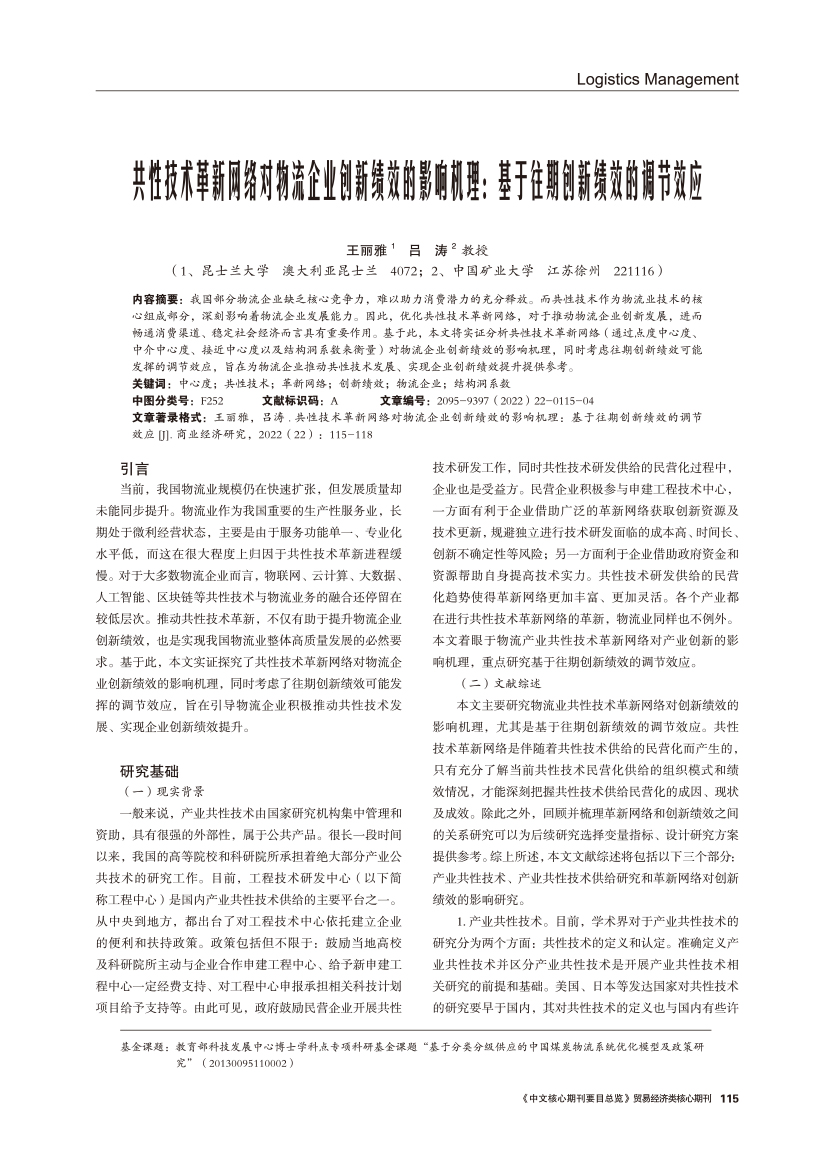| 共性技术革新网络对物流企业创新绩效的影响机理:基于往期创新绩效的调节效应 |