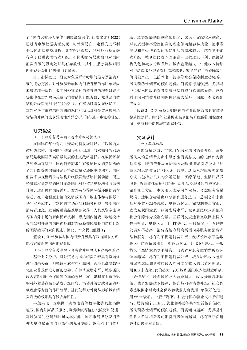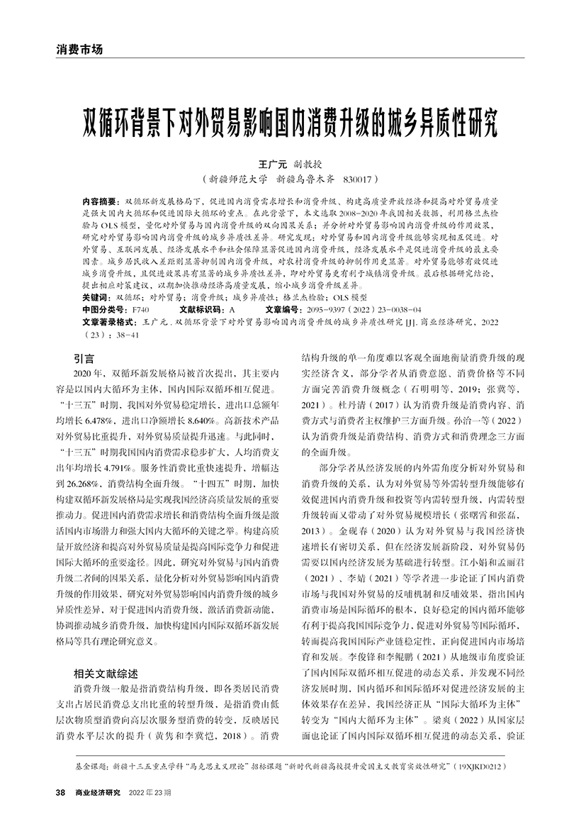 | 双循环背景下对外贸易影响国内消费升级的城乡异质性研究 |