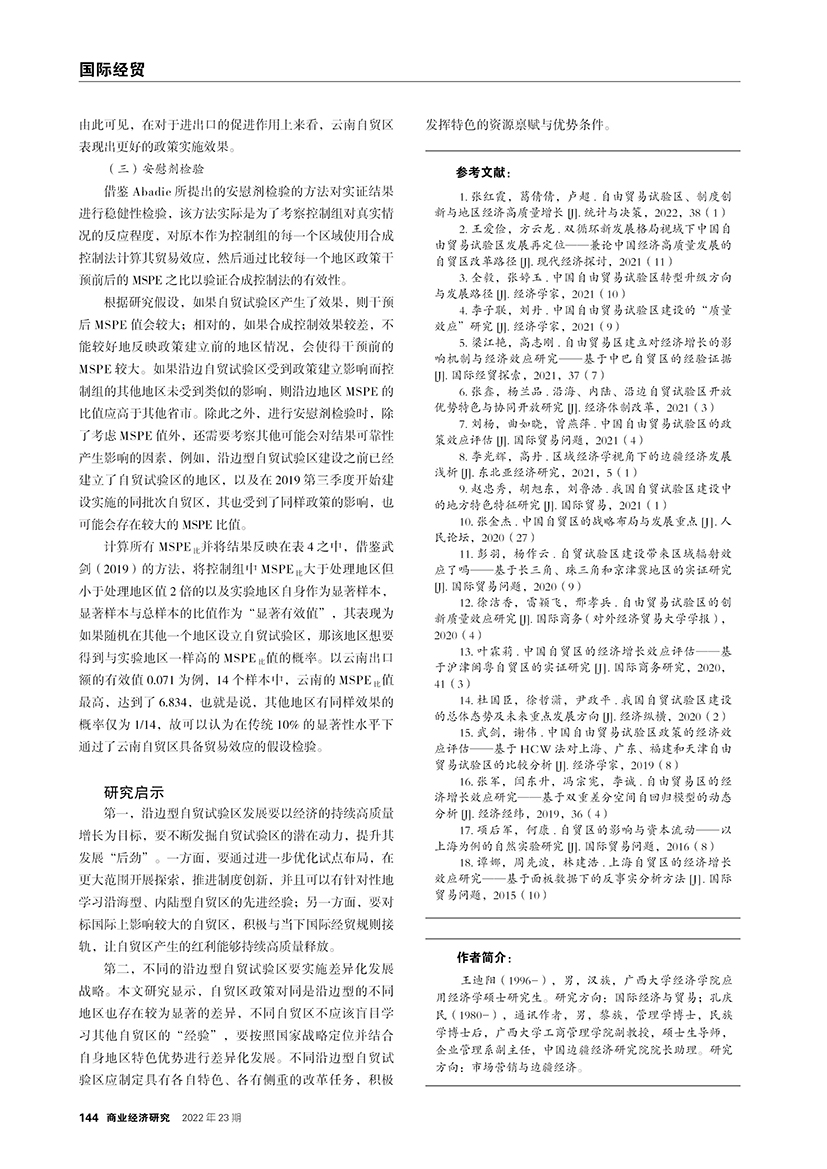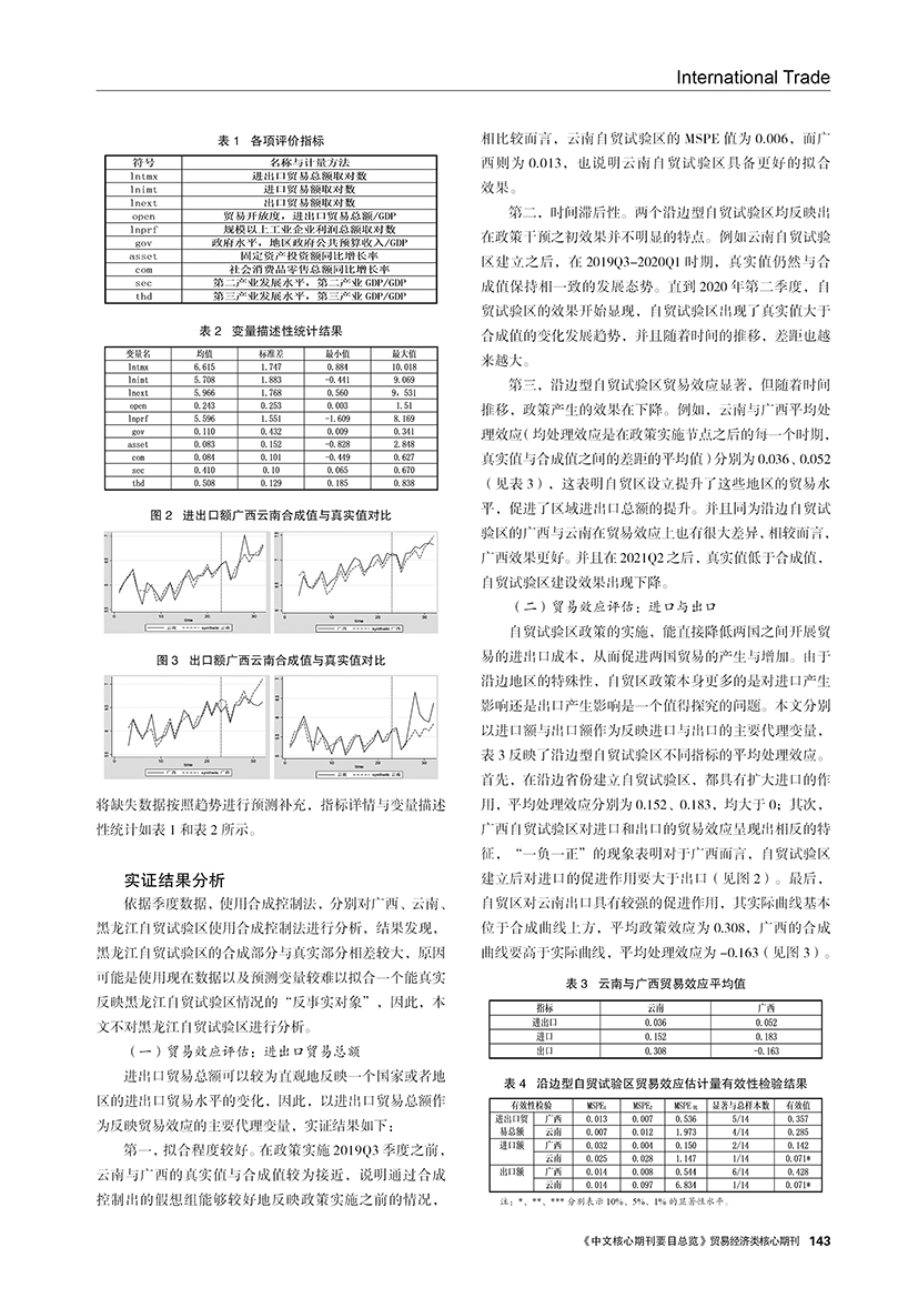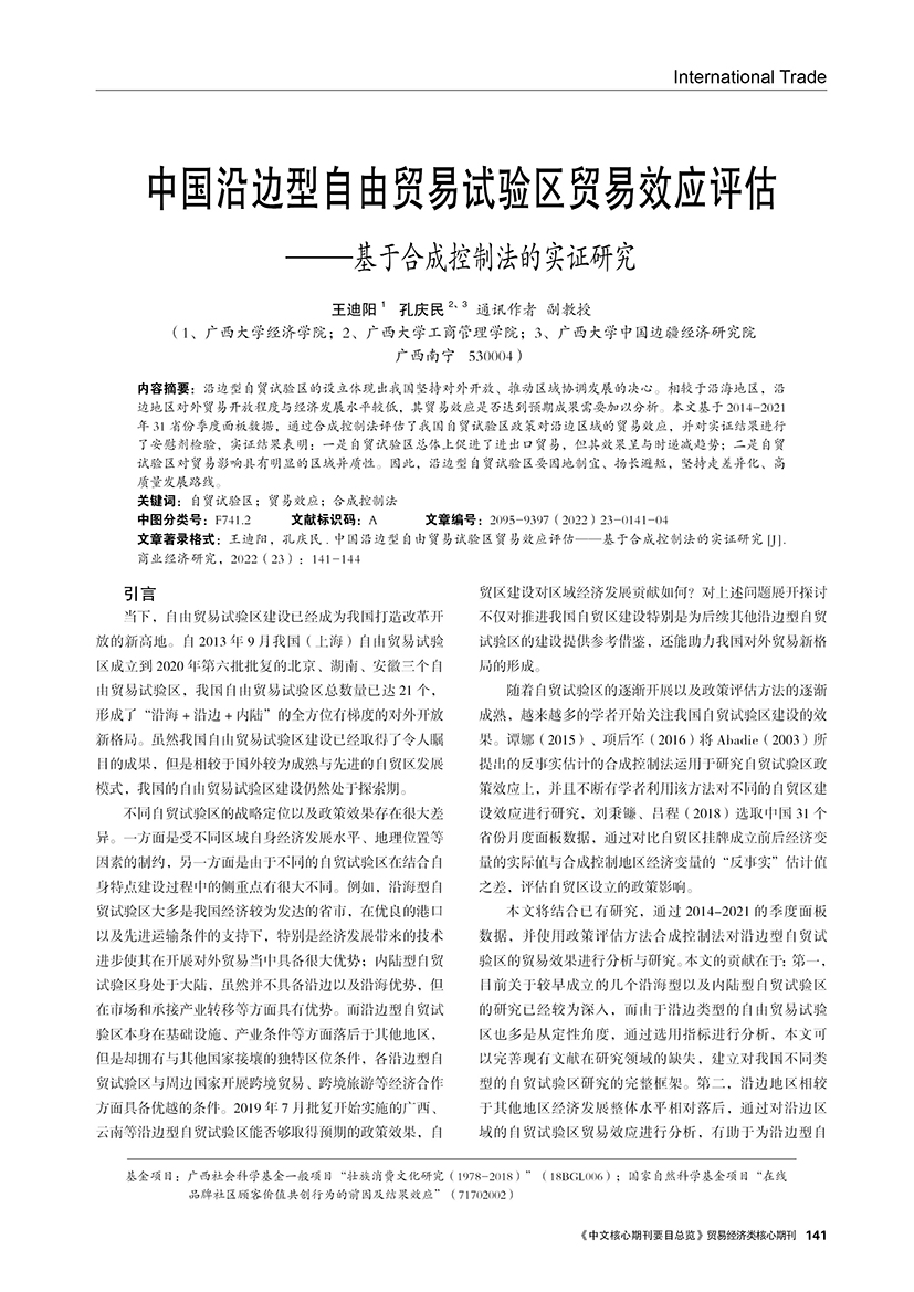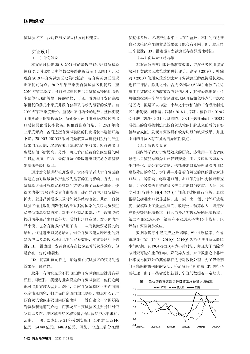 | 中国沿边型自由贸易试验区贸易效应评估 ——基于合成控制法的实证研究 |