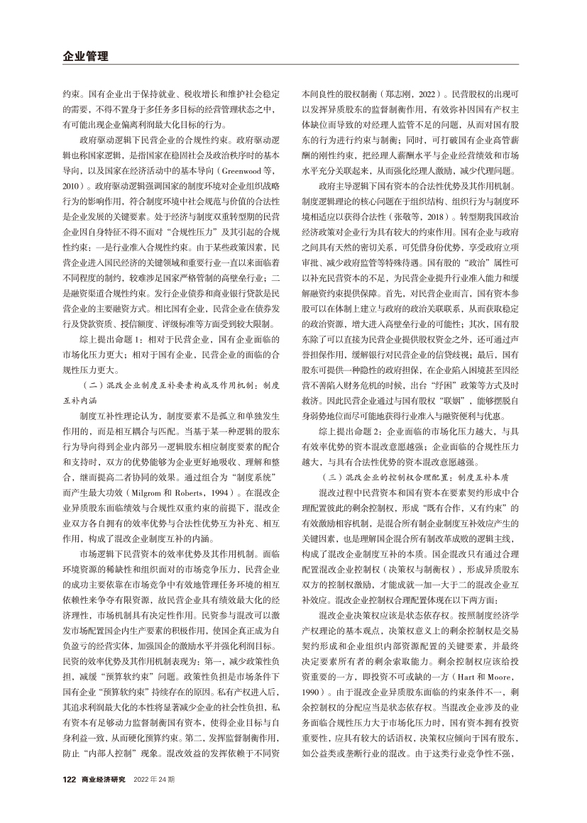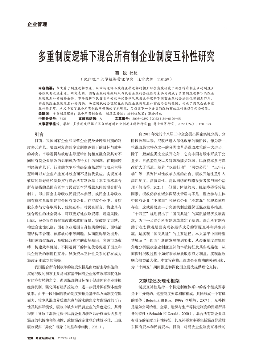 | 多重制度逻辑下混合所有制企业制度互补性研究 |