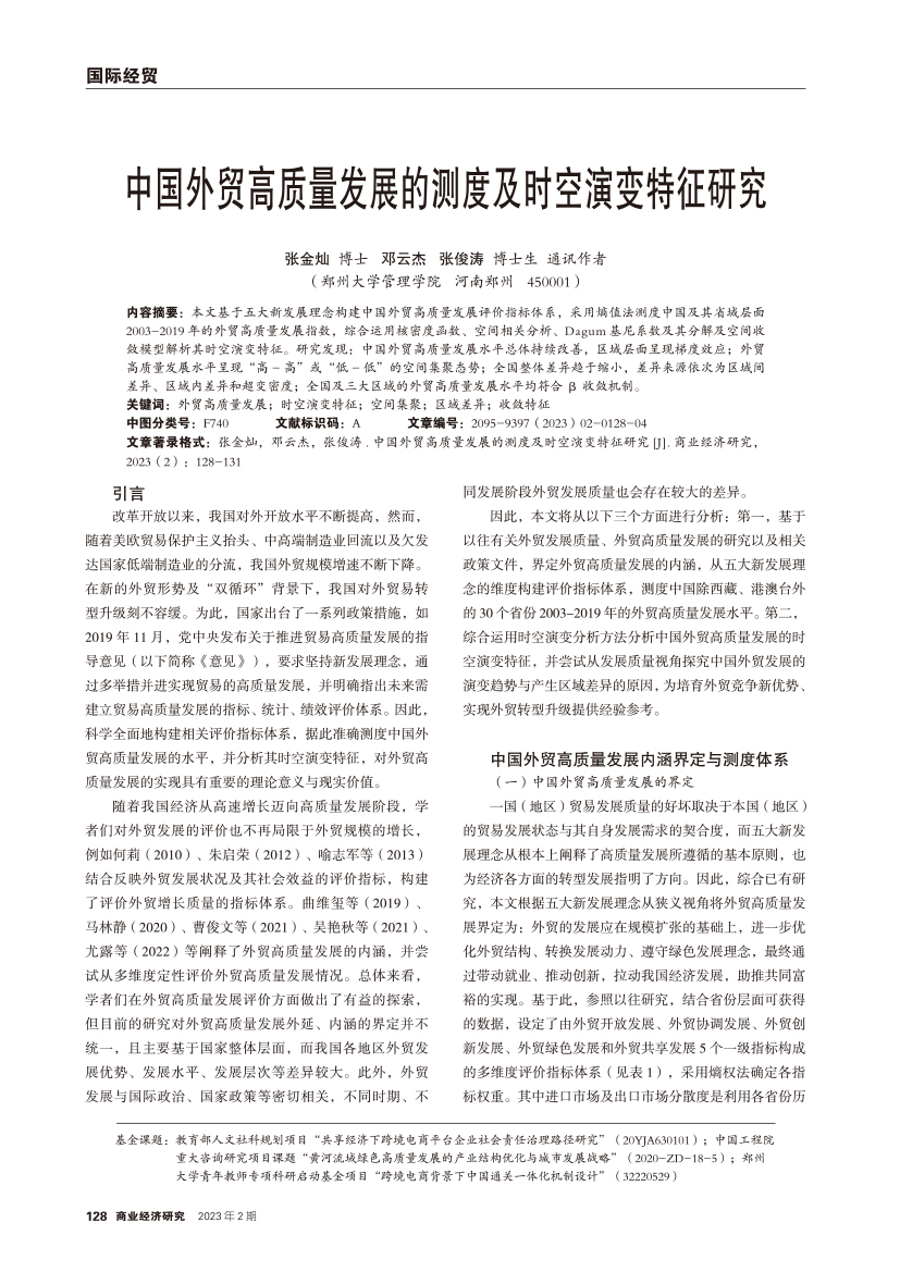 | 中国外贸高质量发展的测度及时空演变特征研究 |