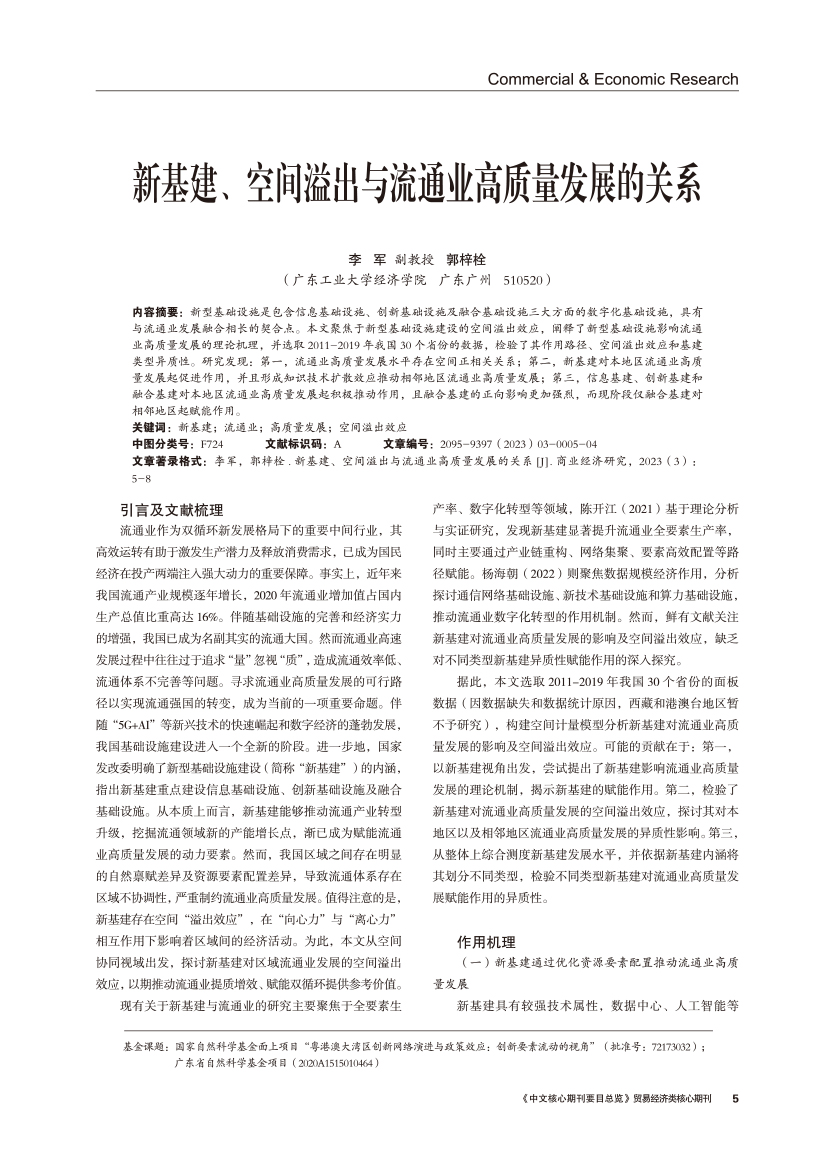 | 新基建、空间溢出与流通业高质量发展的关系 |