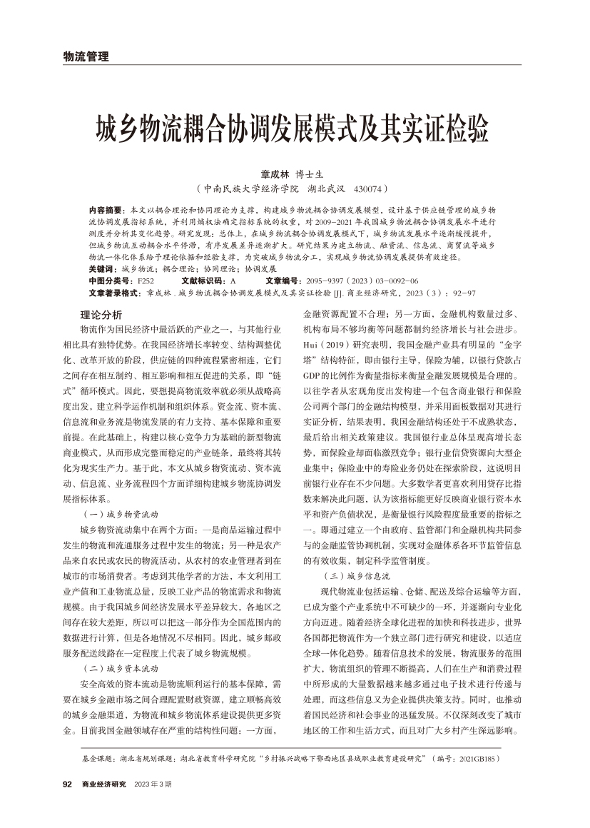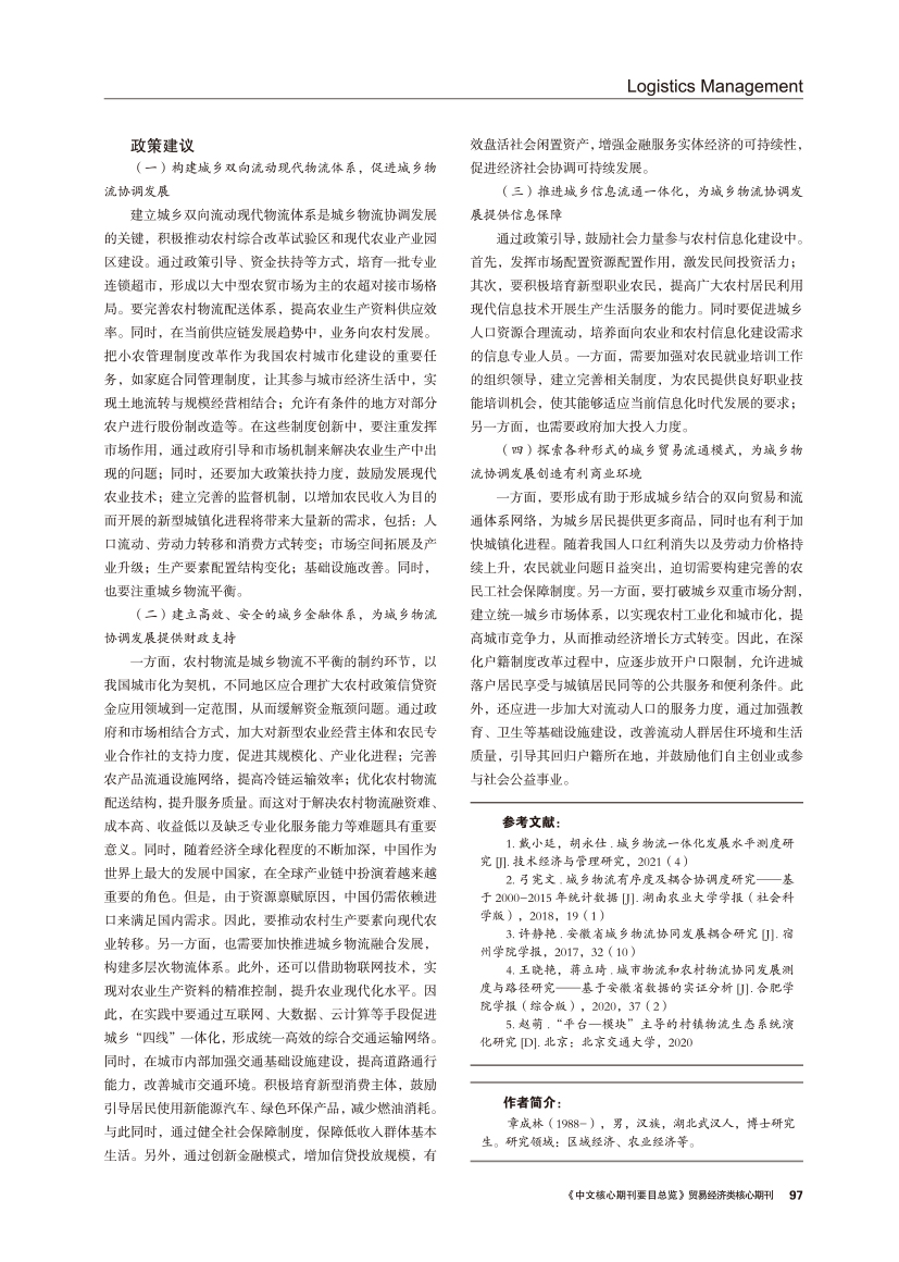 | 城乡物流耦合协调发展模式及其实证检验 |