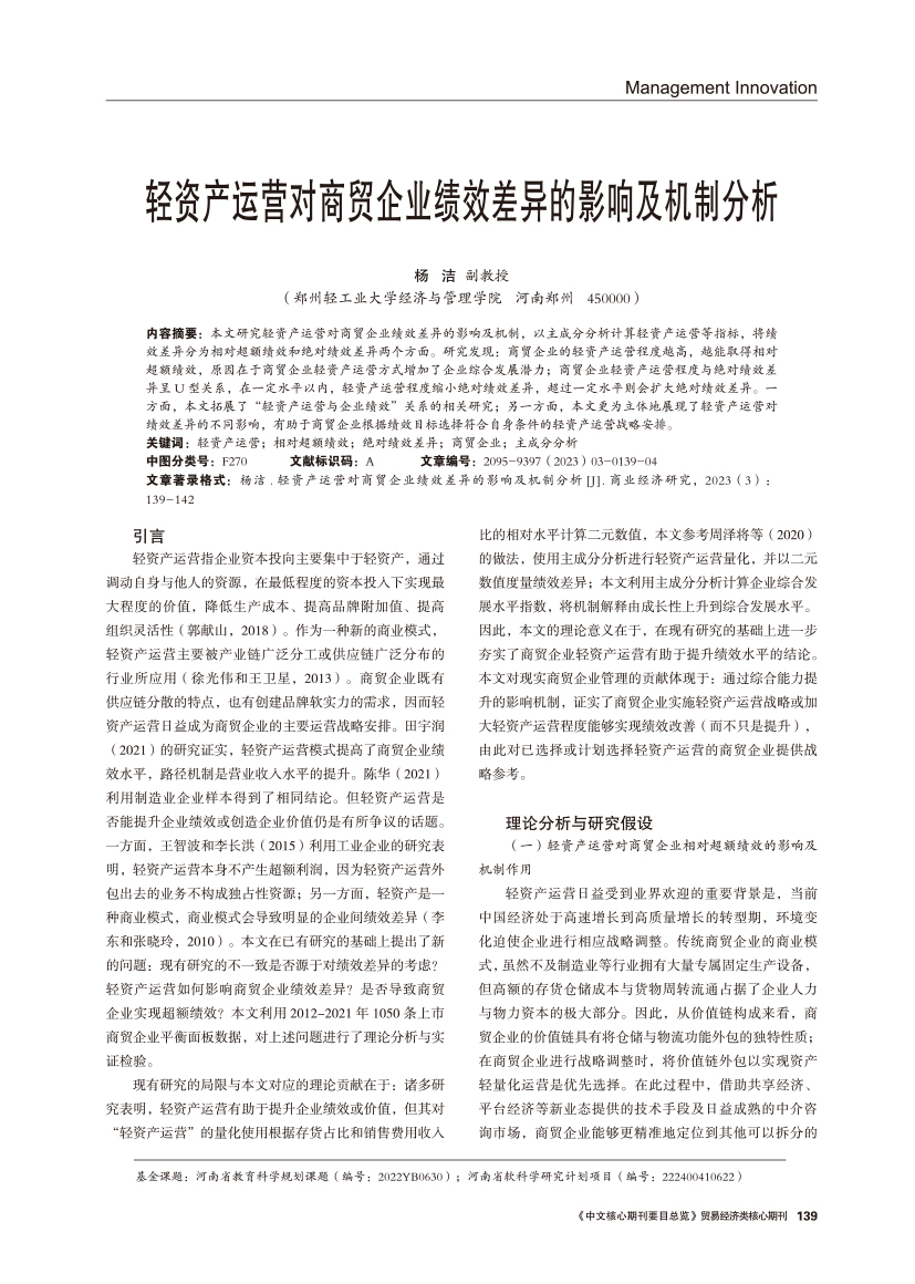 | 轻资产运营对商贸企业绩效差异的影响及机制分析 |