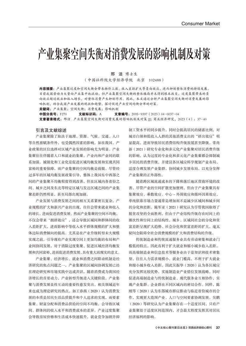 | 产业集聚空间失衡对消费发展的影响机制及对策 |