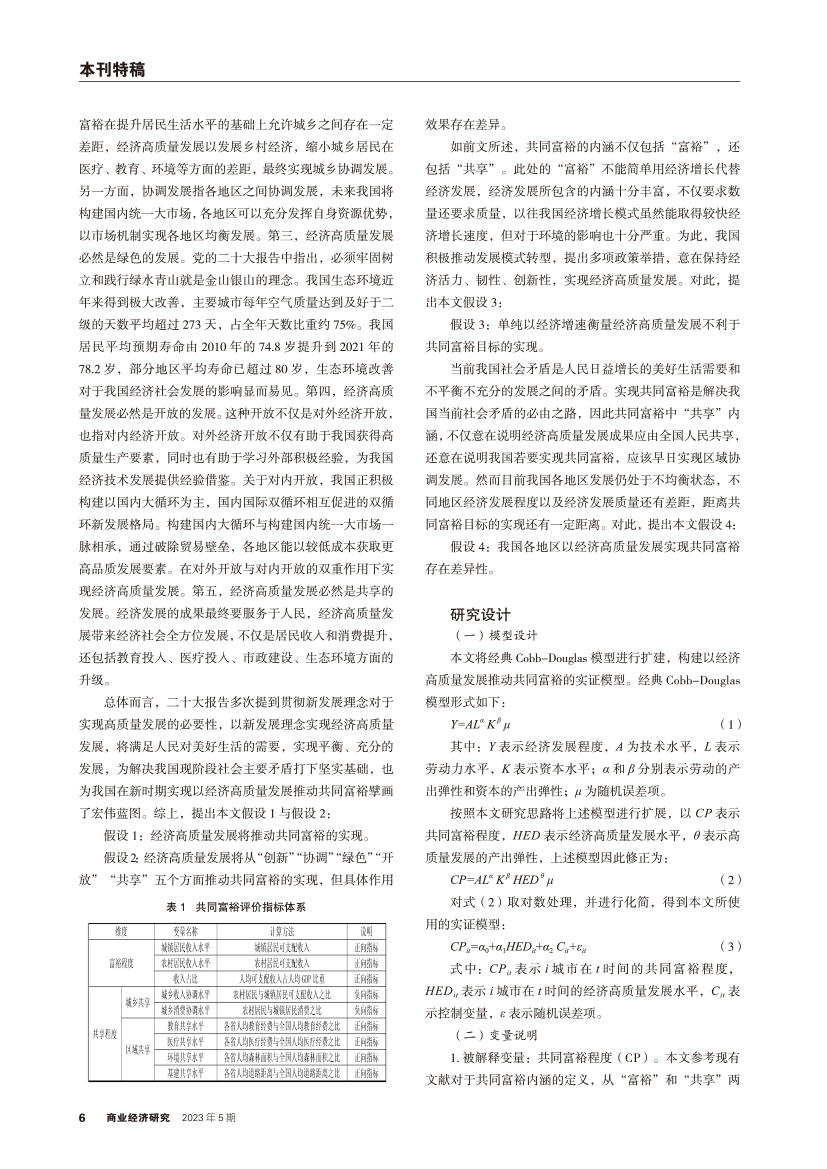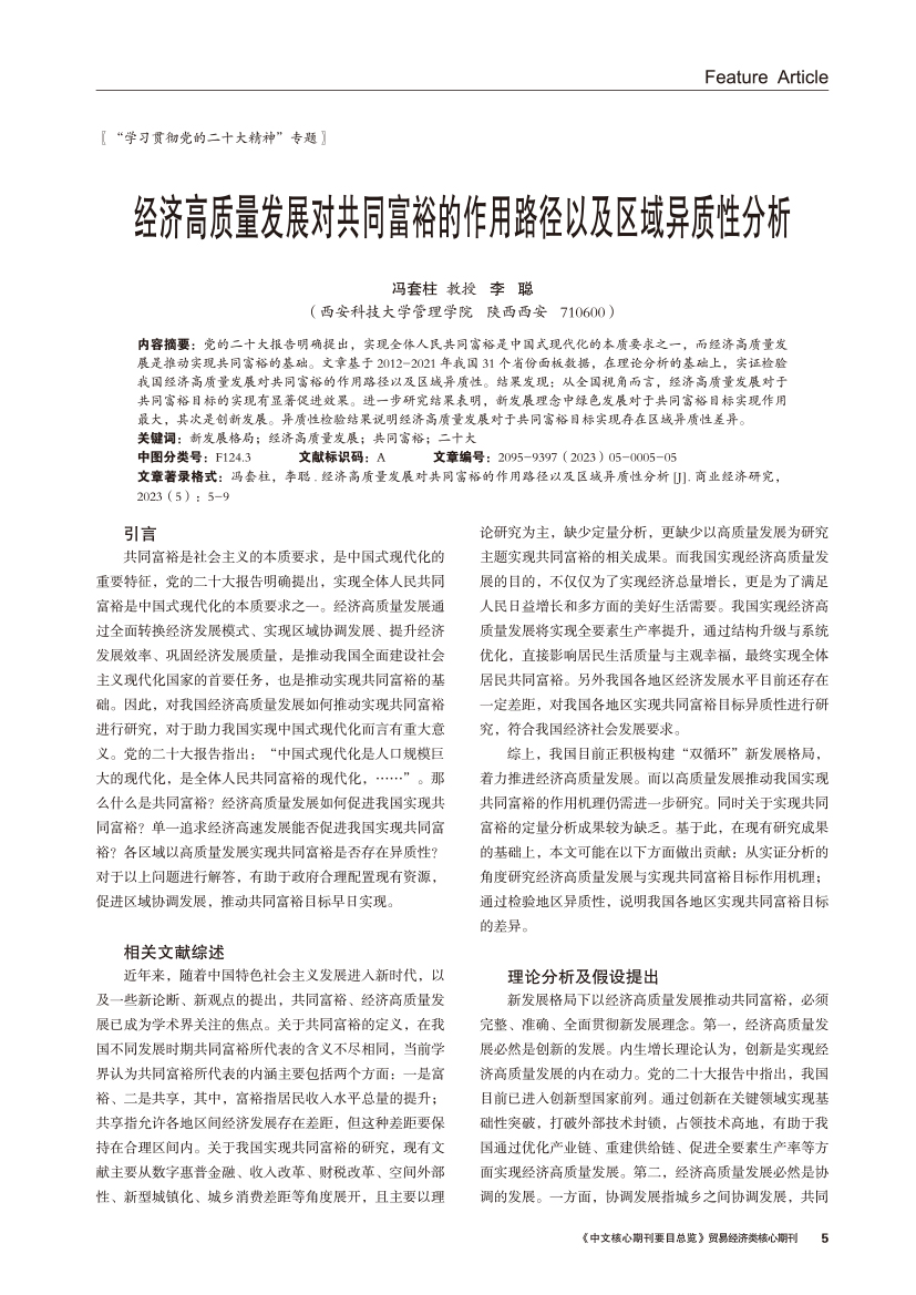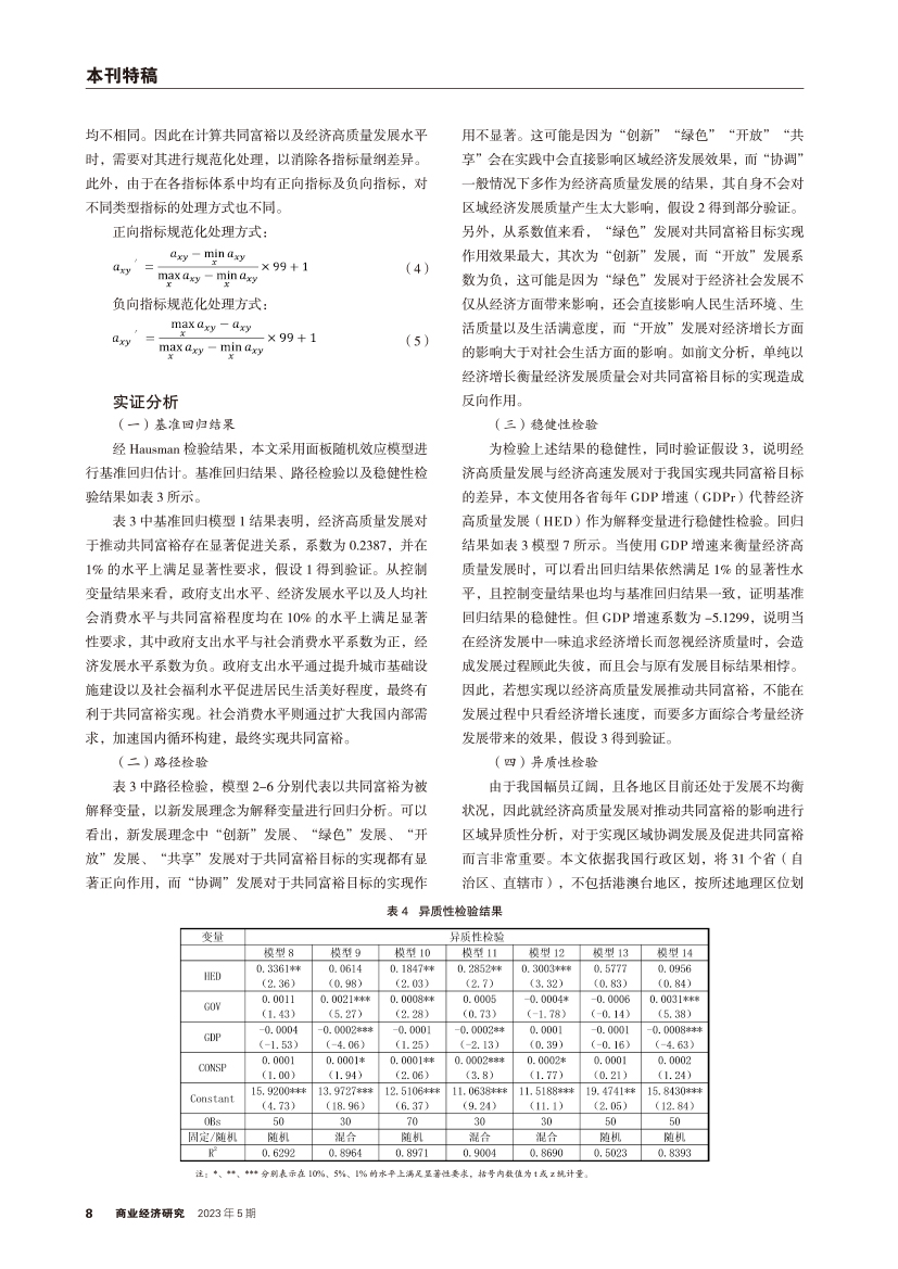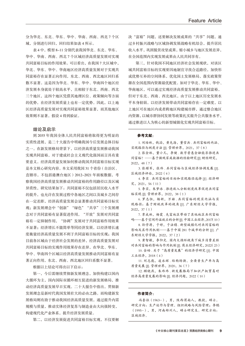 | 经济高质量发展对共同富裕的作用路径以及区域异质性分析 |