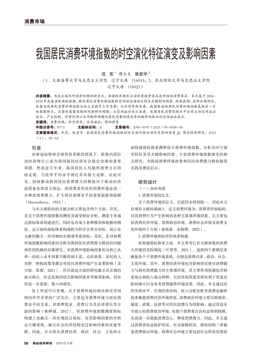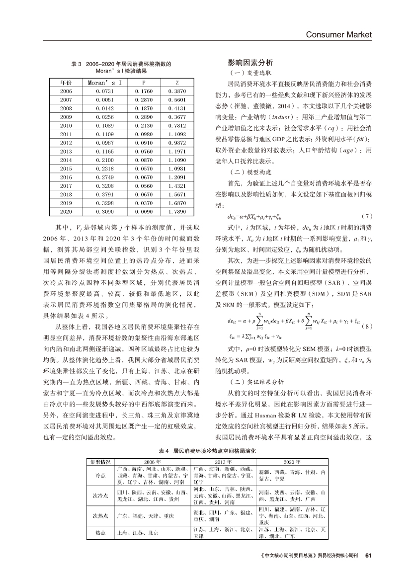 | 我国居民消费环境指数的时空演化特征演变及影响因素 |