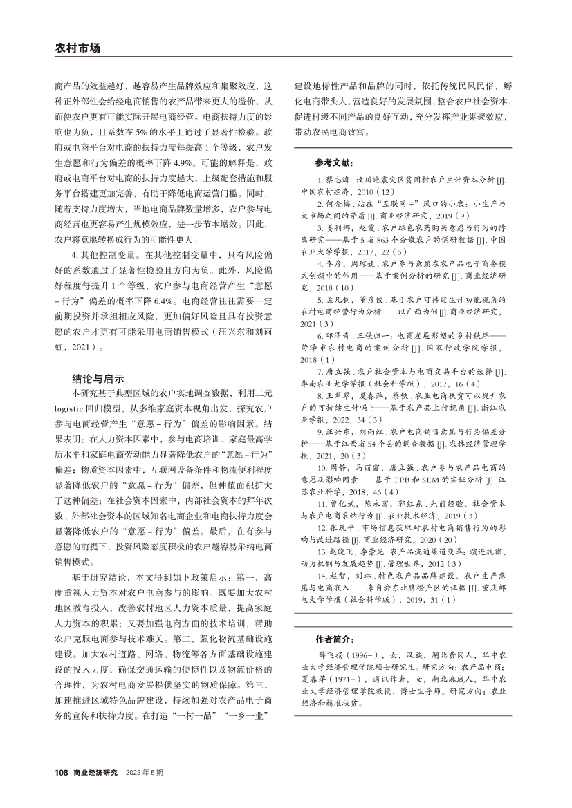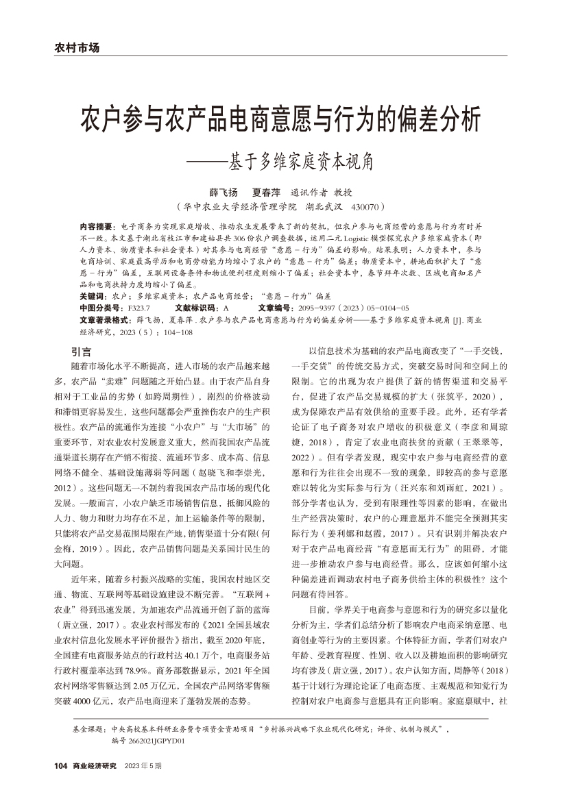 | 农户参与农产品电商意愿与行为的偏差分析 ——基于多维家庭资本视角 |