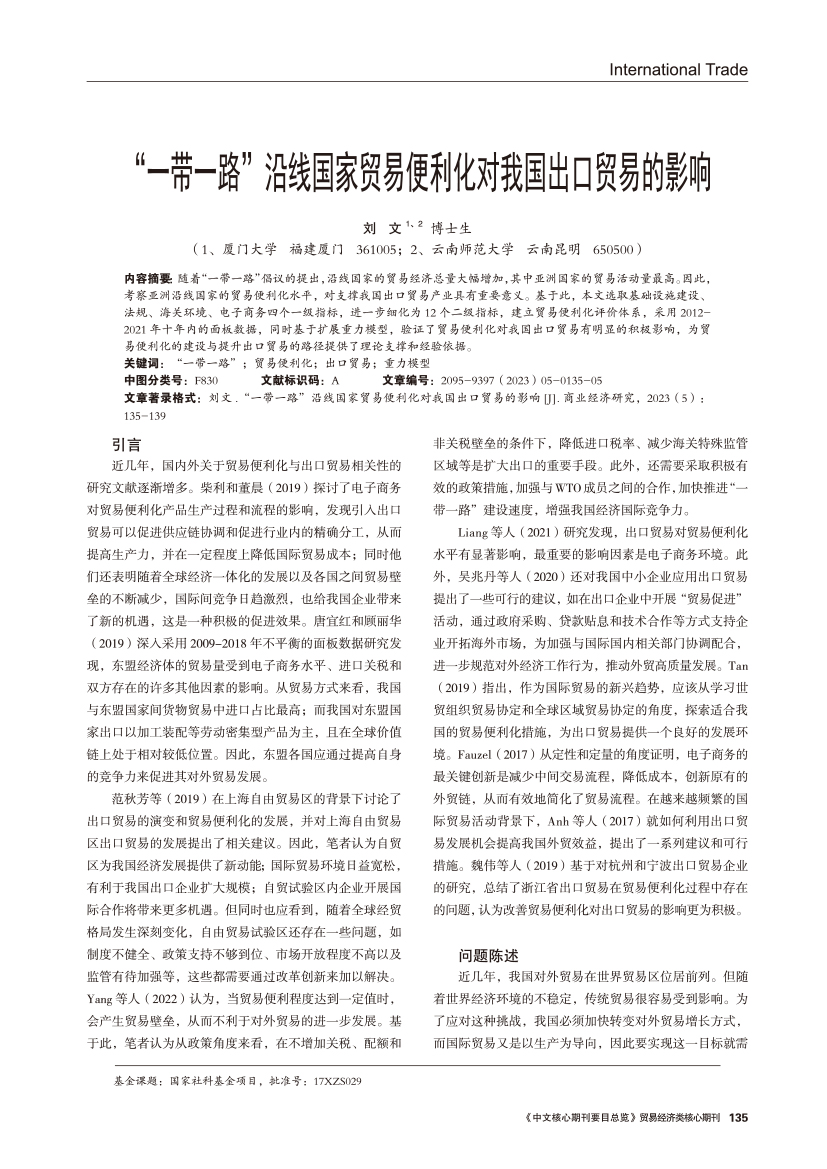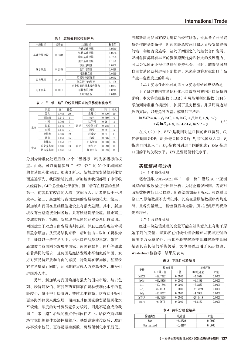 | “一带一路”沿线国家贸易便利化对我国出口贸易的影响 |