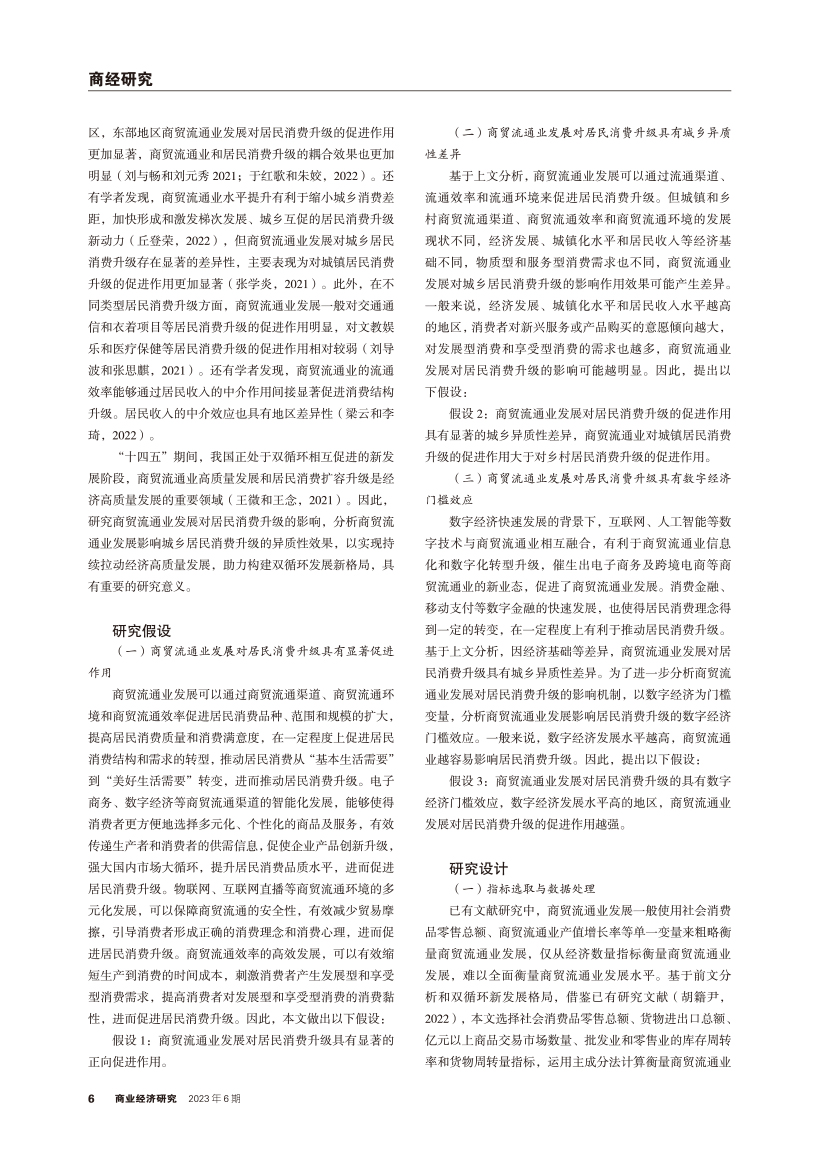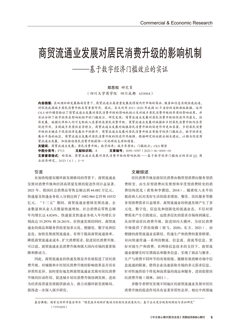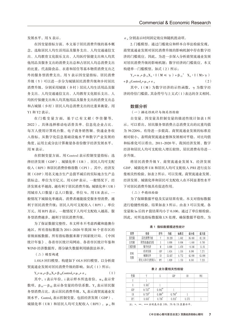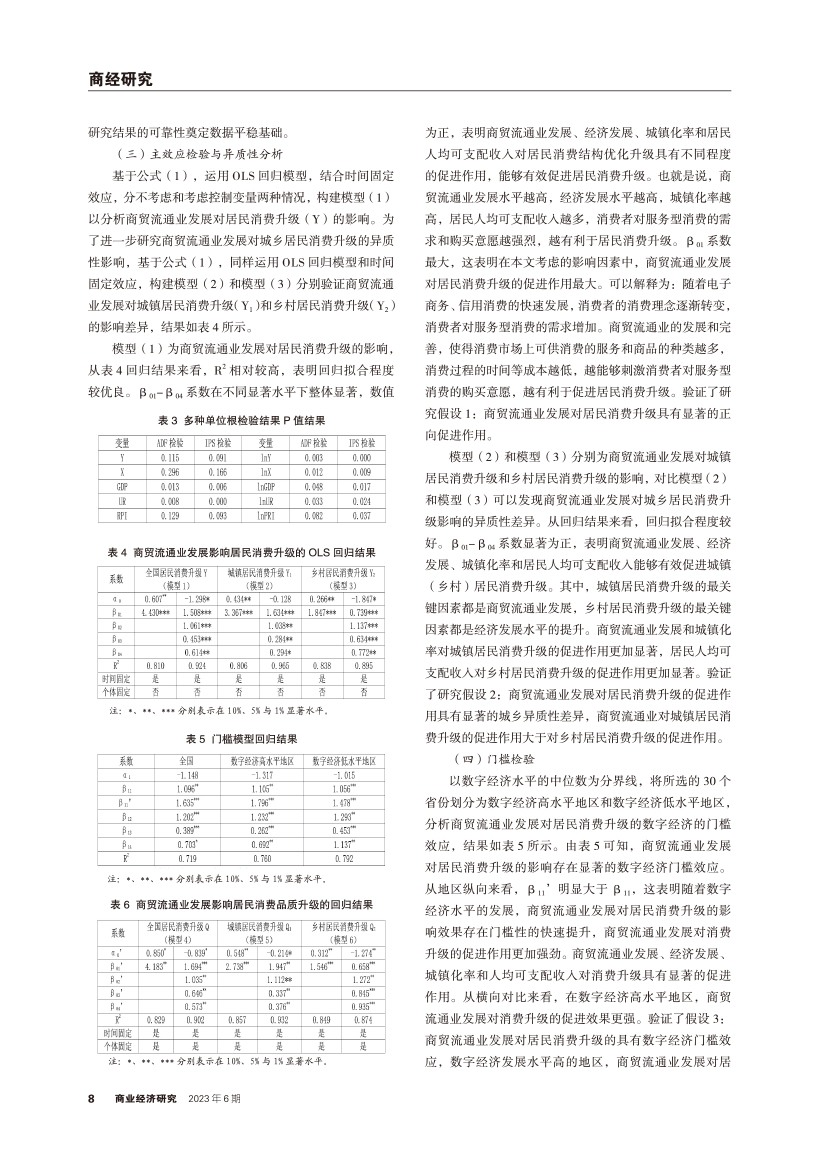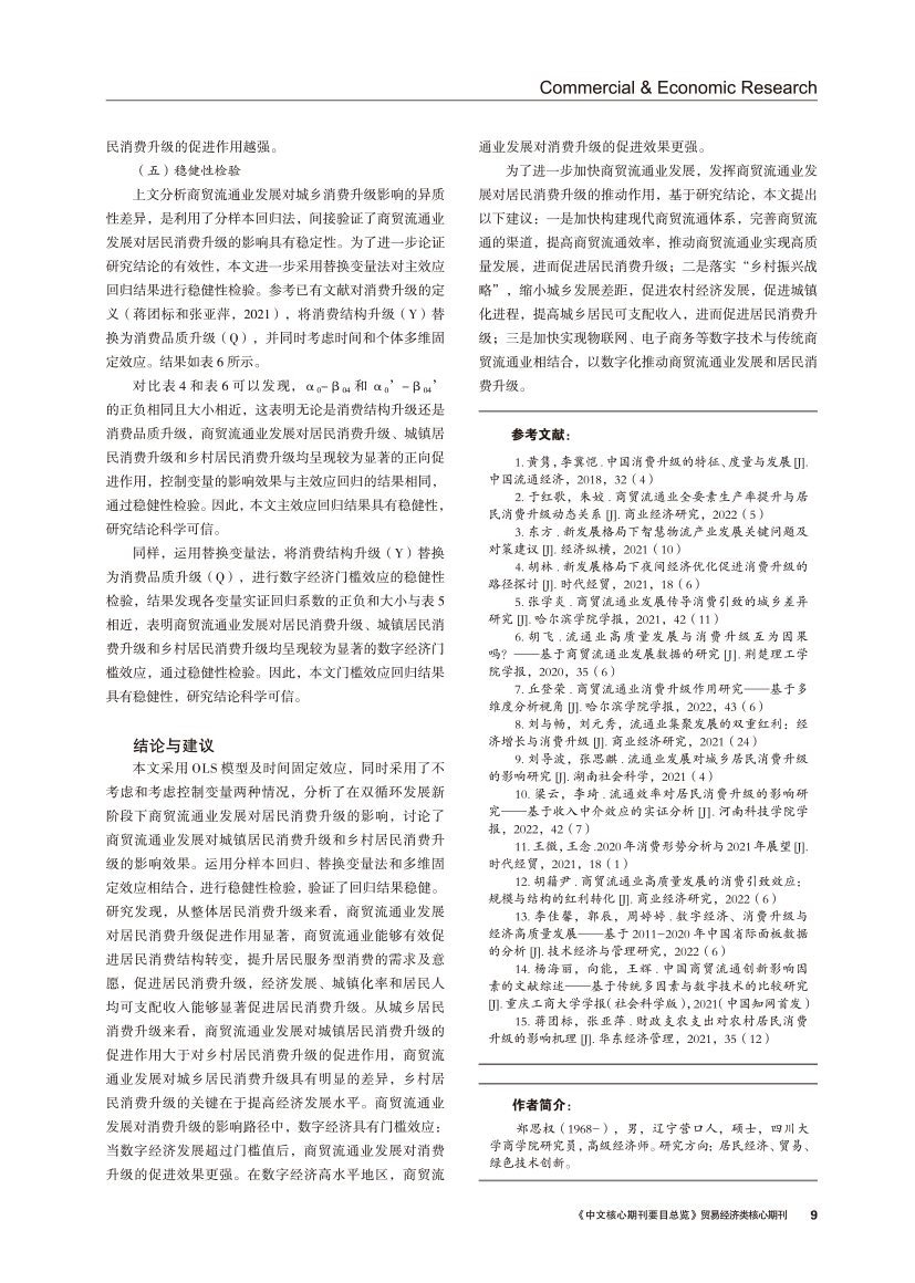 | 商贸流通业发展对居民消费升级的影响机制 ——基于数字经济门槛效应的实证 |