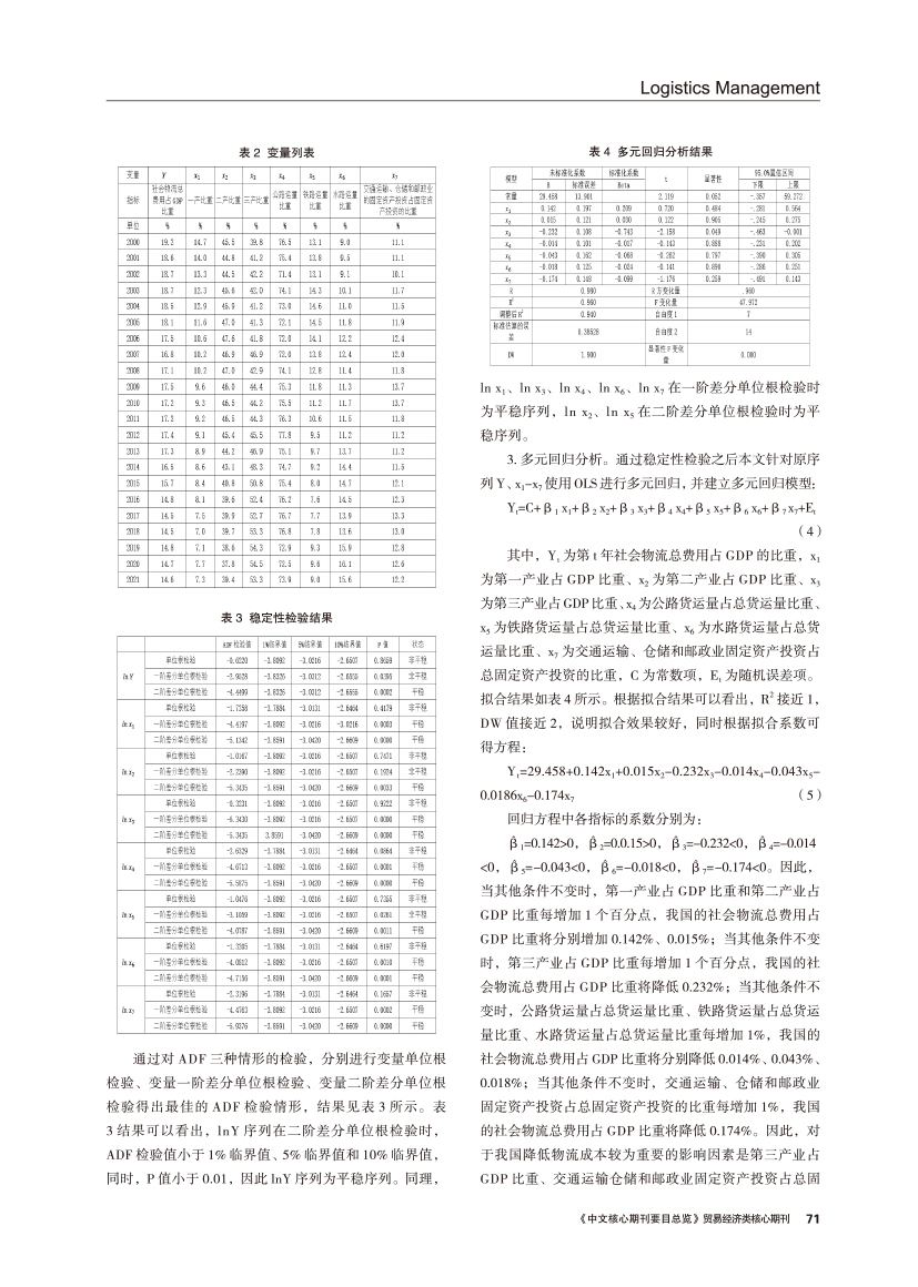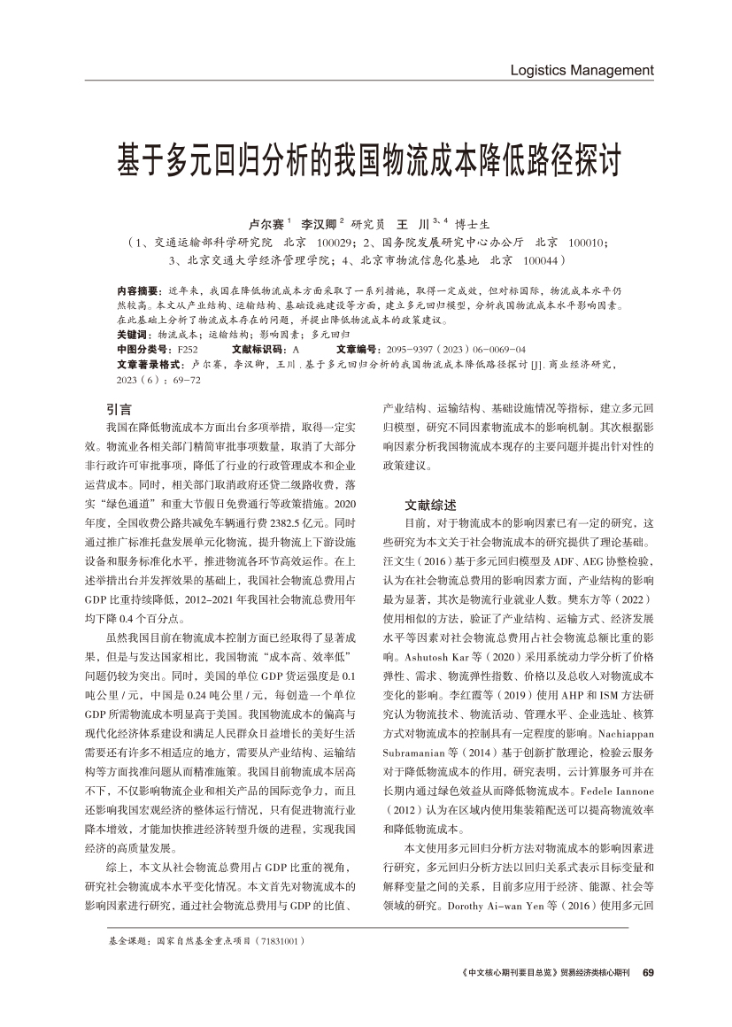 | 基于多元回归分析的我国物流成本降低路径探讨 |