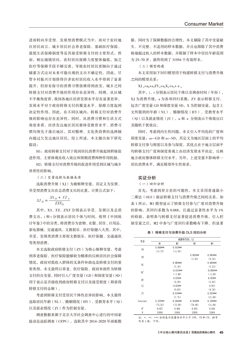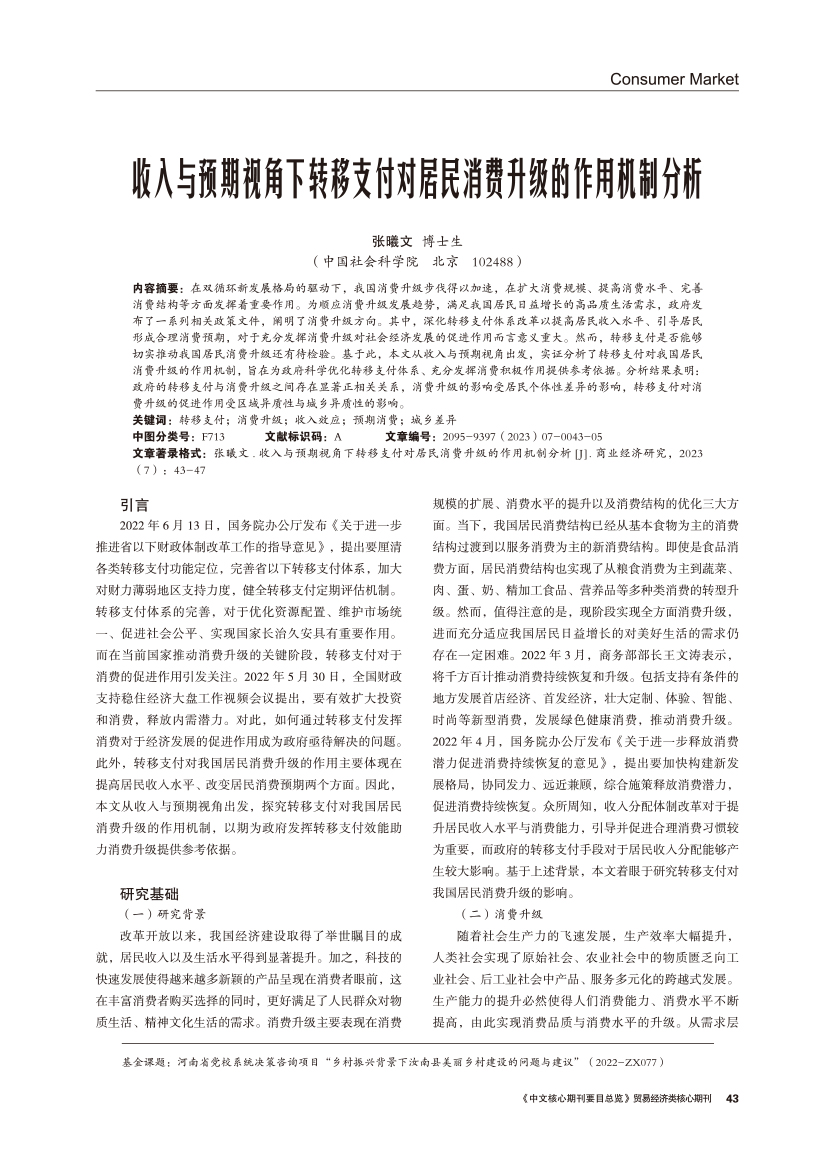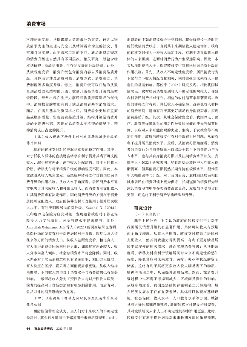 | 收入与预期视角下转移支付对居民消费升级的作用机制分析 |