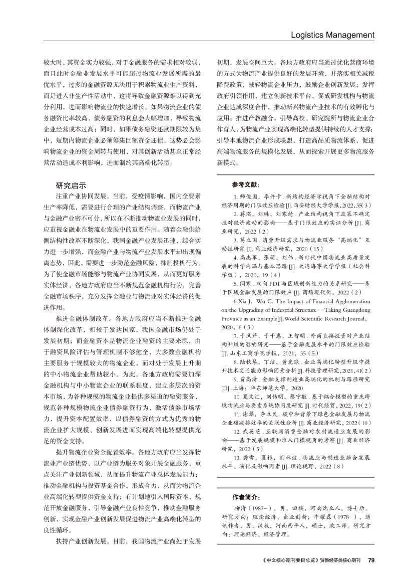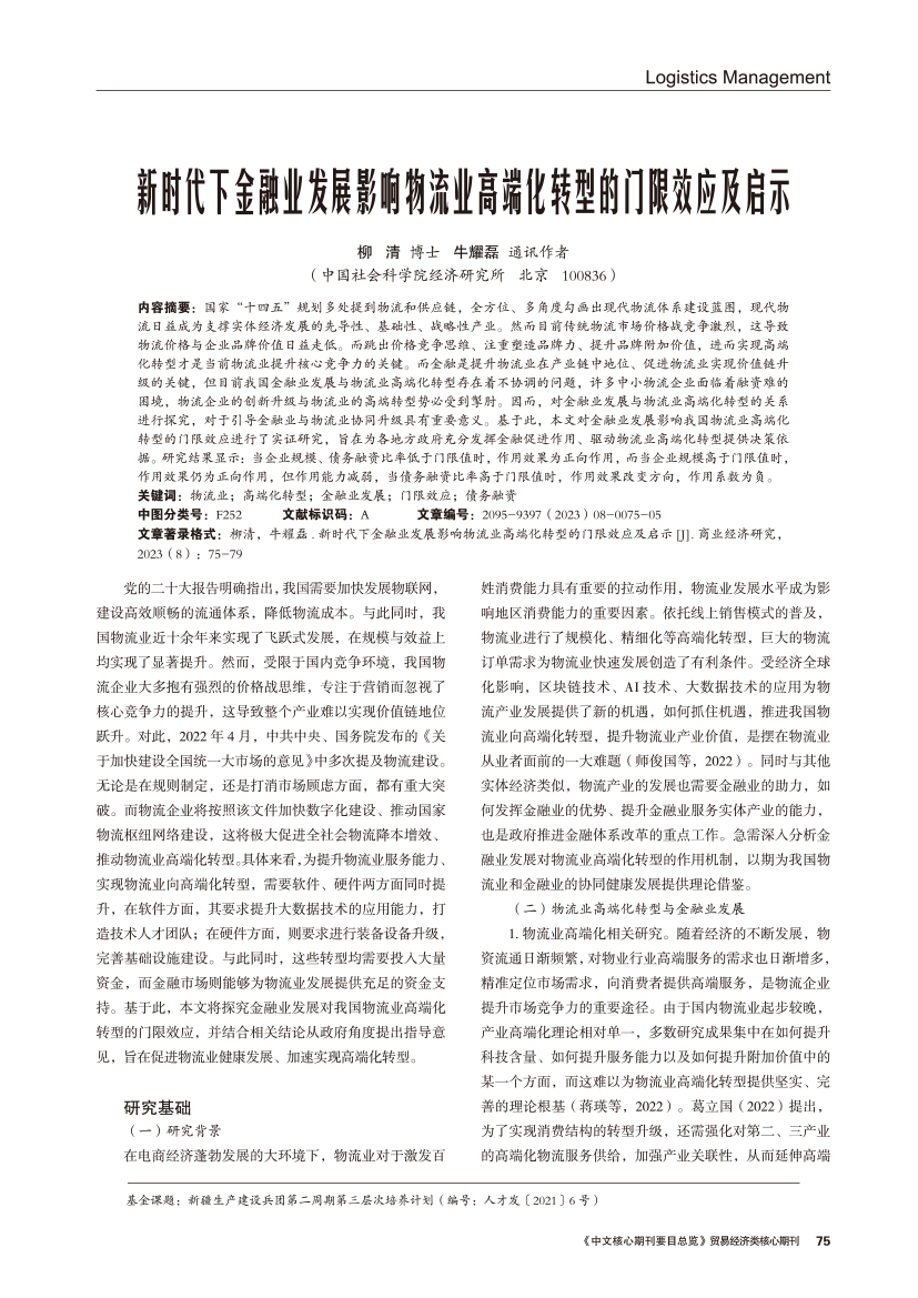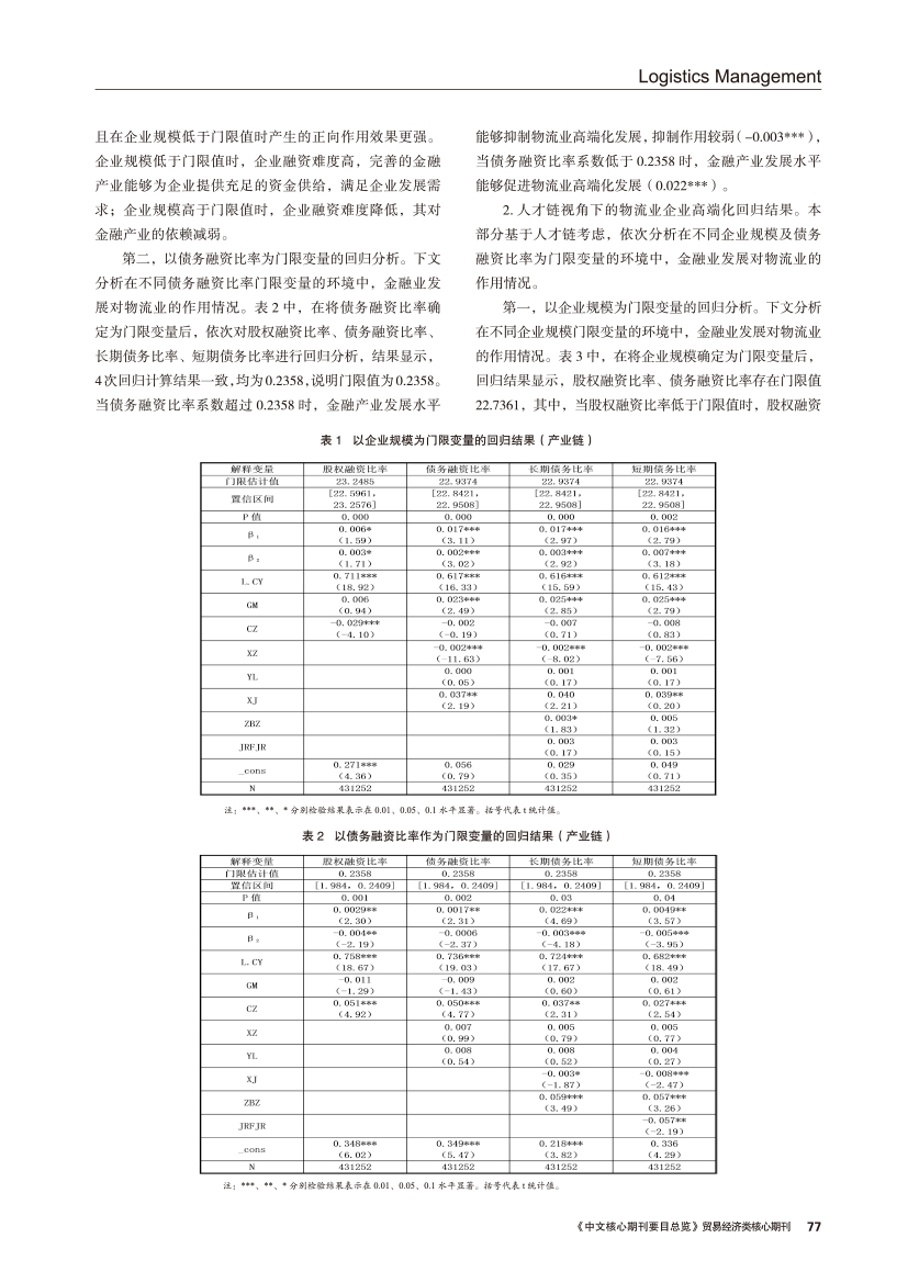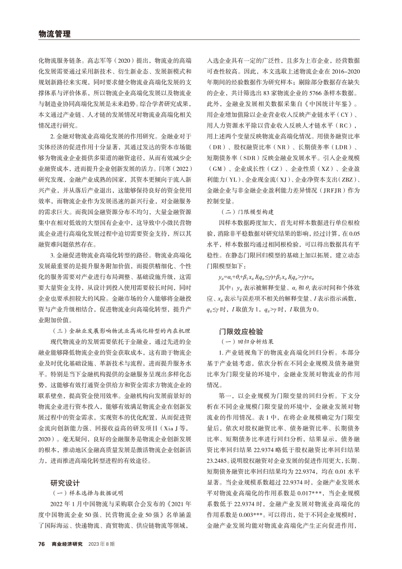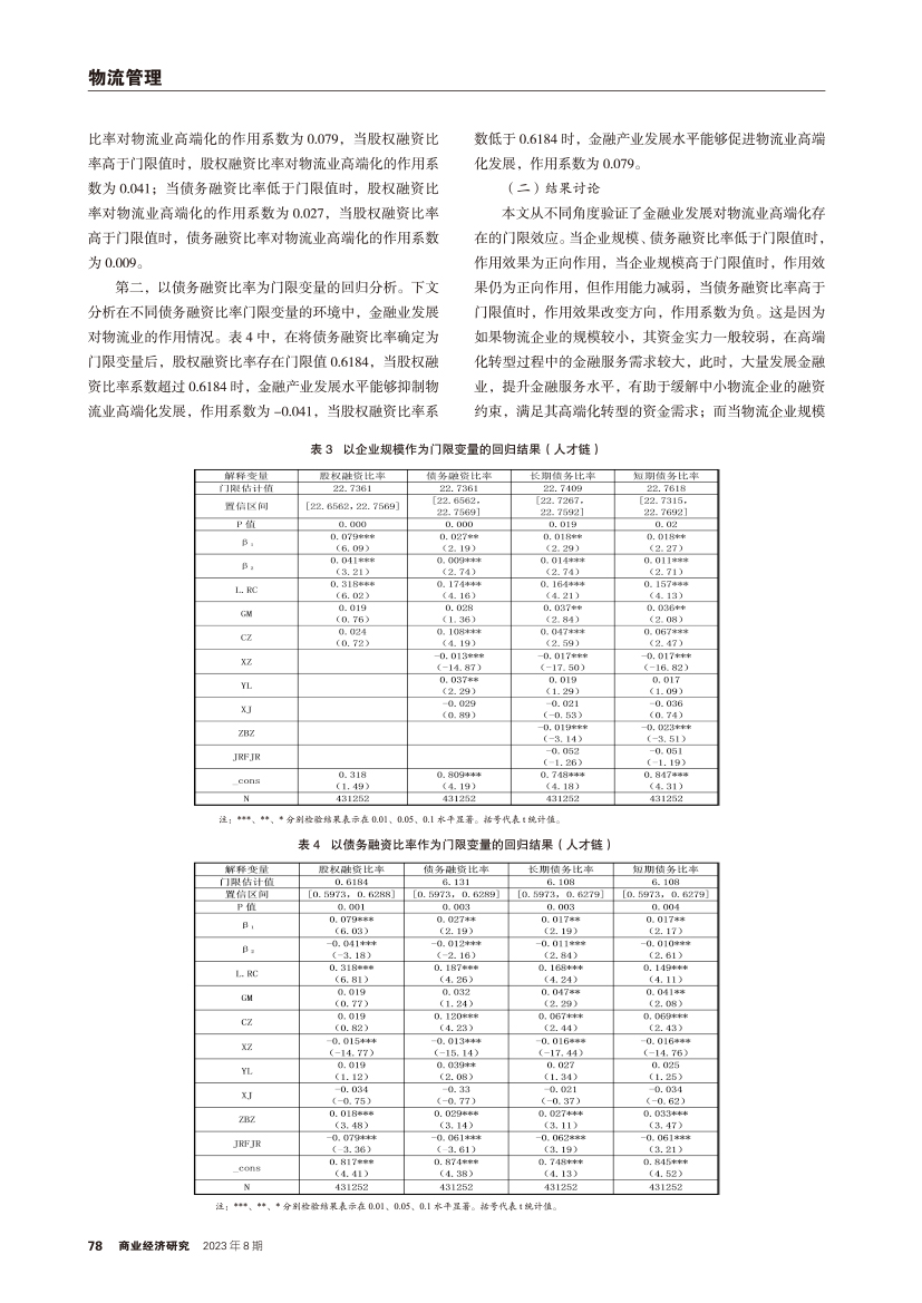 | 新时代下金融业发展影响物流业高端化转型的门限效应及启示 |
