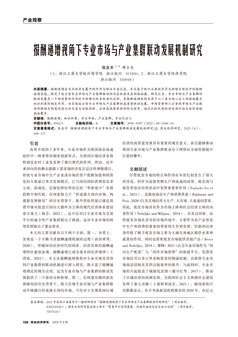 | 报酬递增视角下专业市场与产业集群联动发展机制研究 |