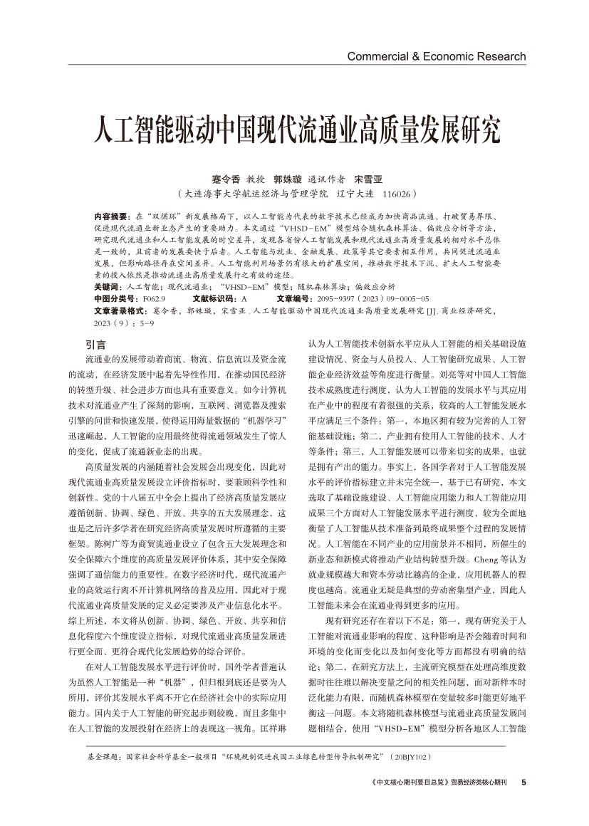 | 人工智能驱动中国现代流通业高质量发展研究 |
