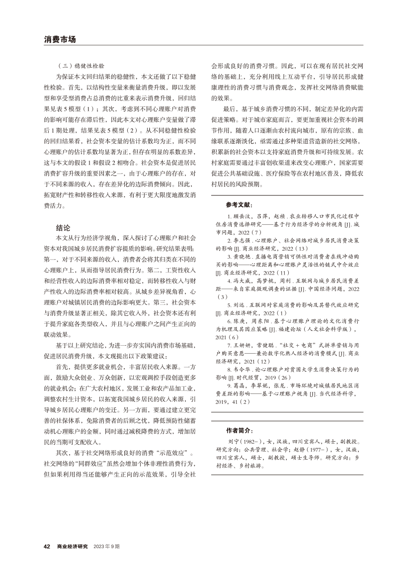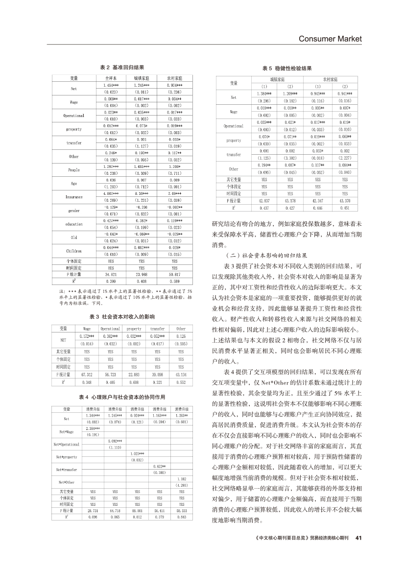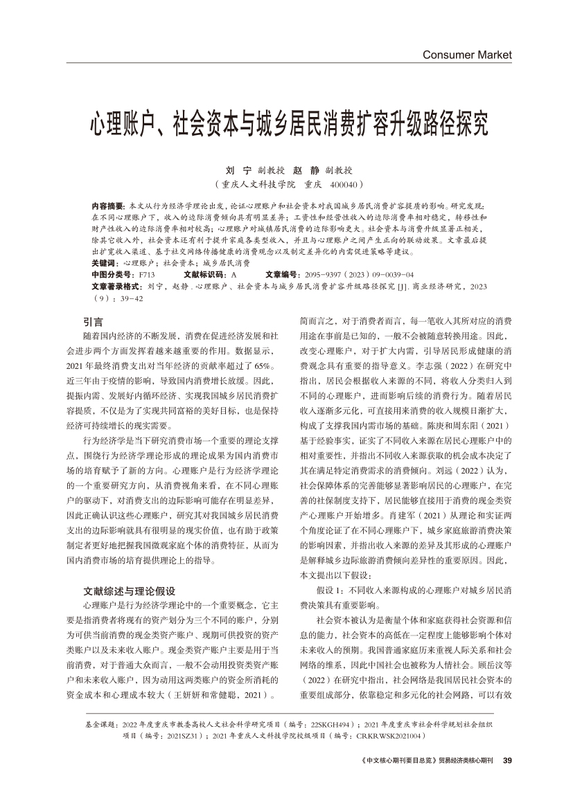 | 心理账户、社会资本与城乡居民消费扩容升级路径探究 |