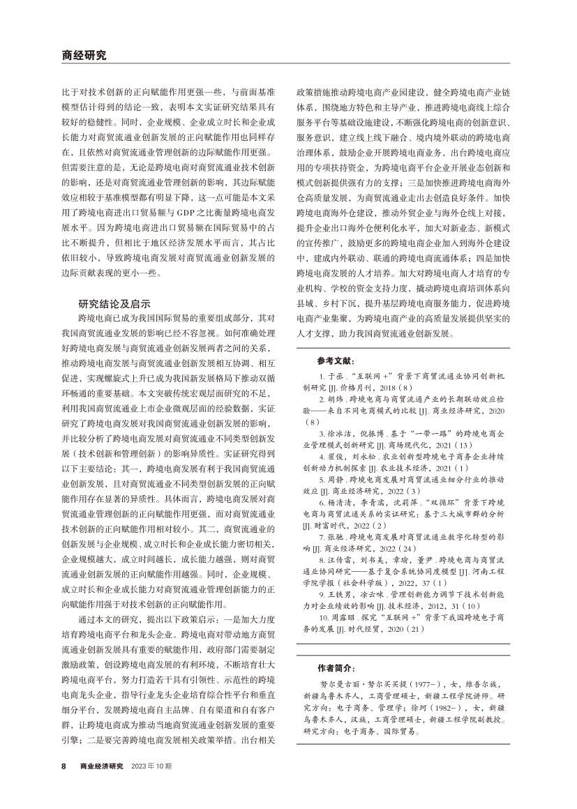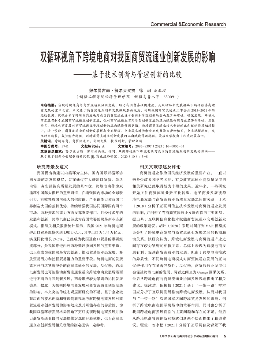 | 双循环视角下跨境电商对我国商贸流通业创新发展的影响 ——基于技术创新与管理创新的比较 |