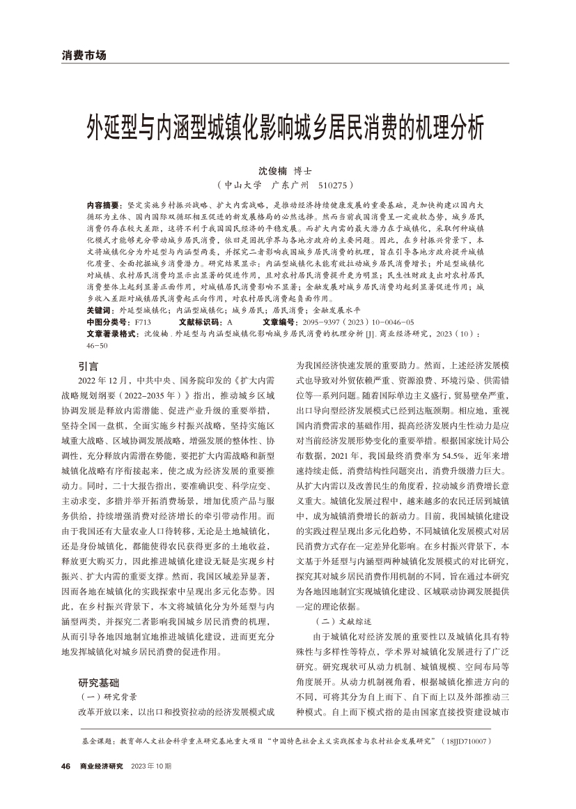 | 外延型与内涵型城镇化影响城乡居民消费的机理分析 |