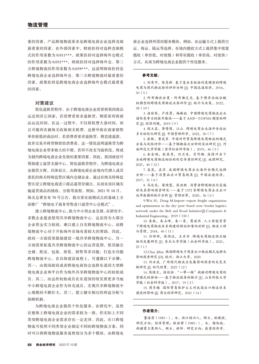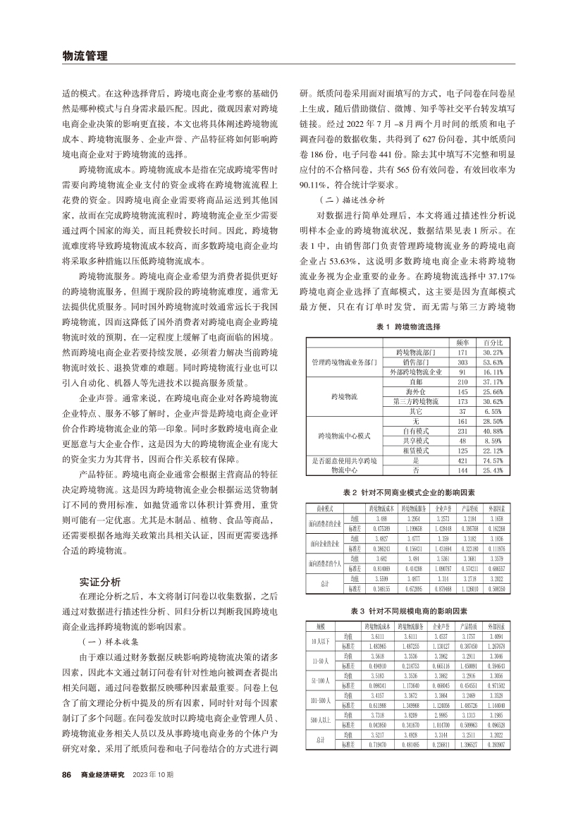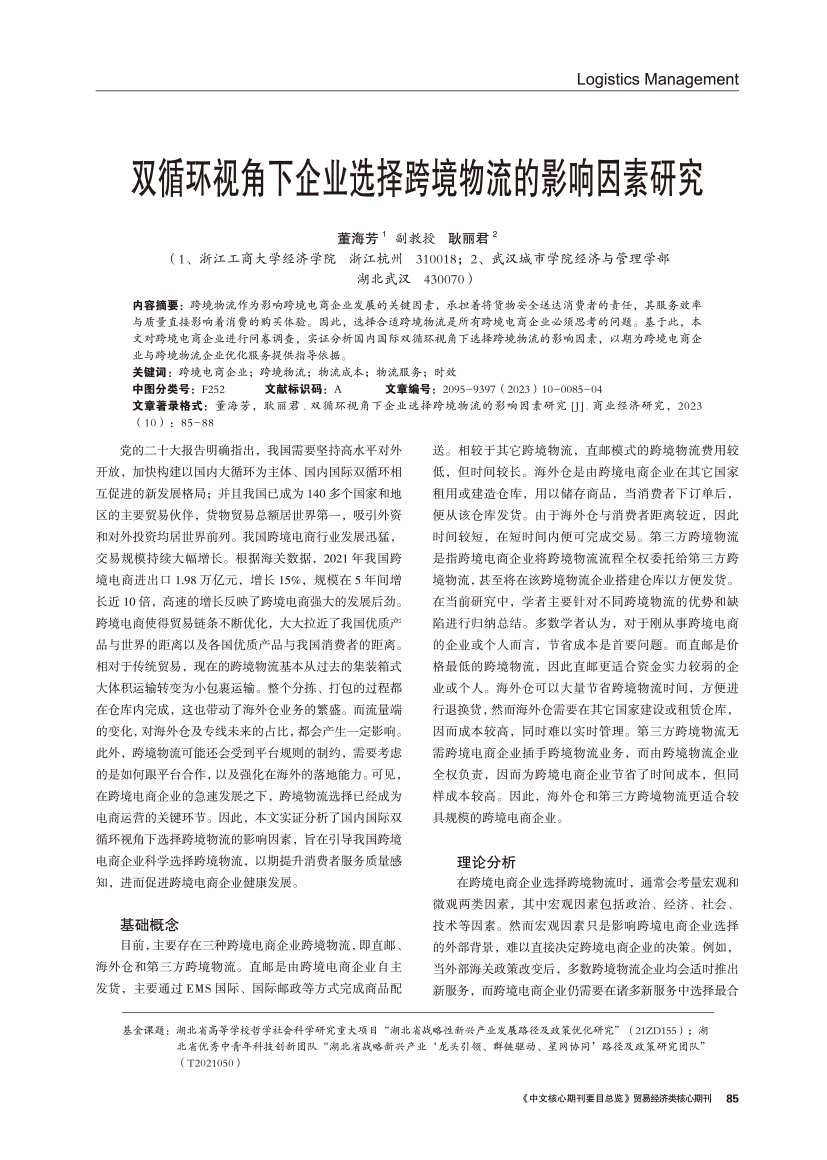 | 双循环视角下企业选择跨境物流的影响因素研究 |