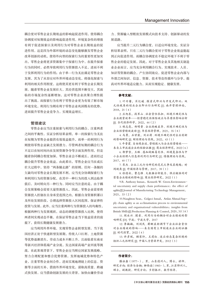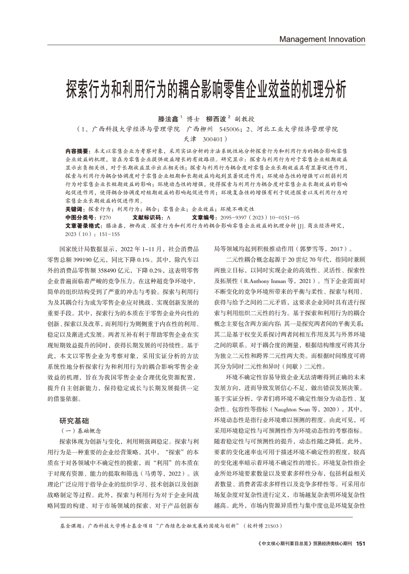 | 探索行为和利用行为的耦合影响零售企业效益的机理分析 |