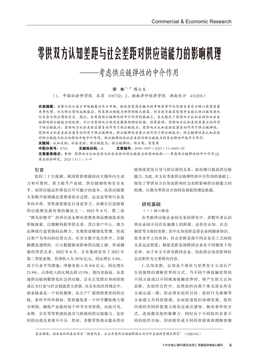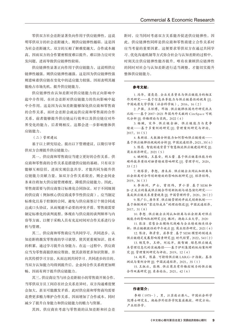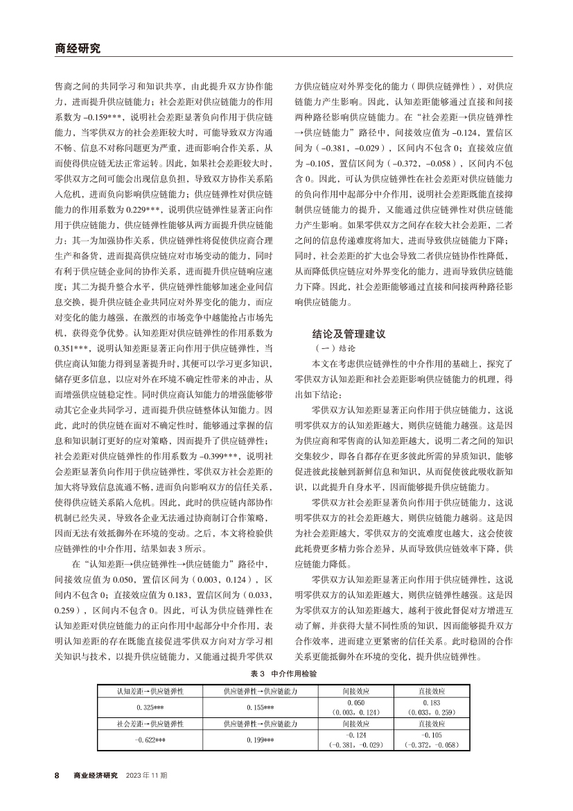 | 零供双方认知差距与社会差距对供应链能力的影响机理 ——考虑供应链弹性的中介作用 |
