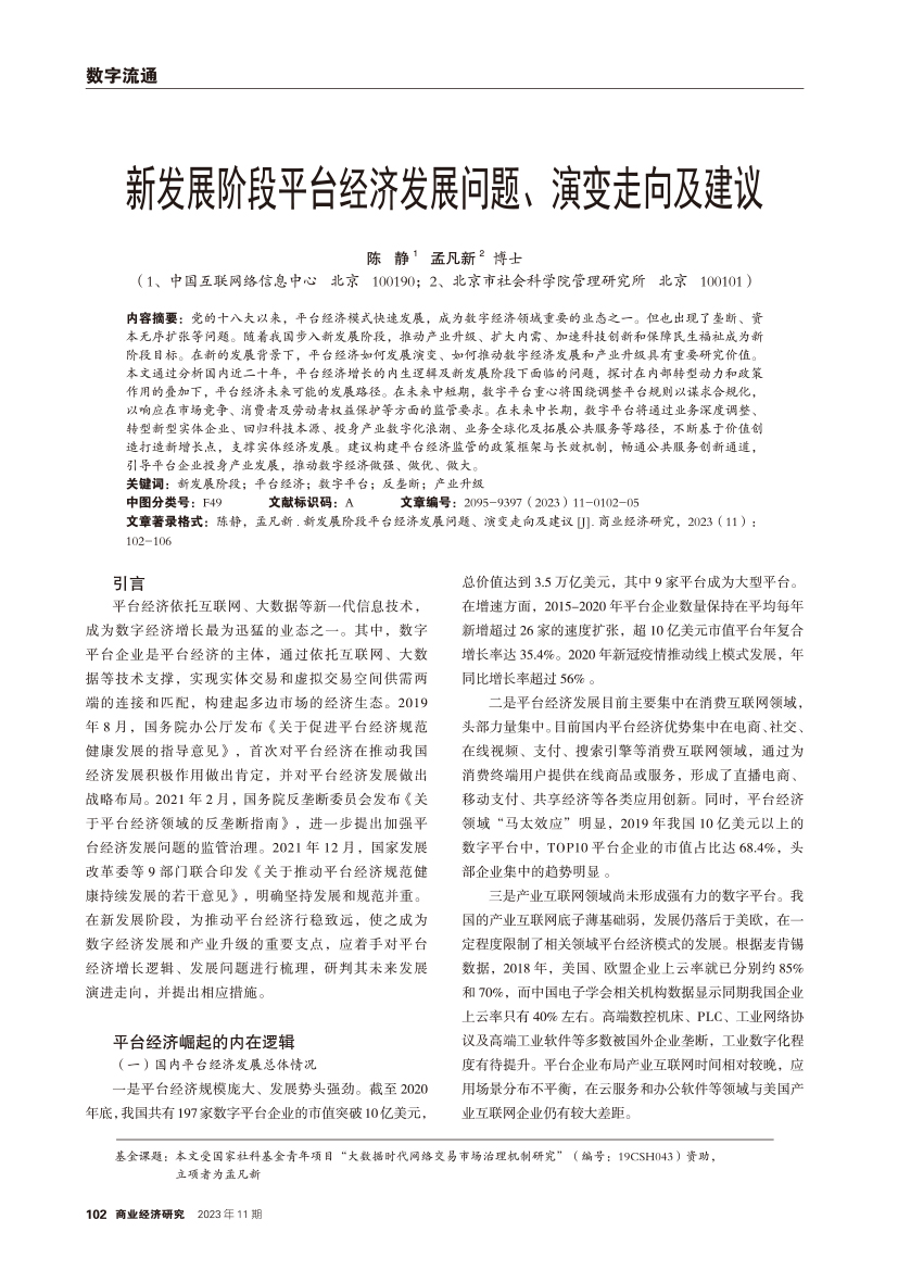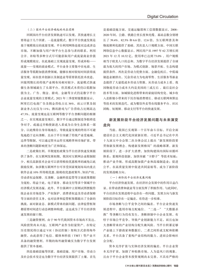 | 新发展阶段平台经济发展问题、演变走向及建议 |