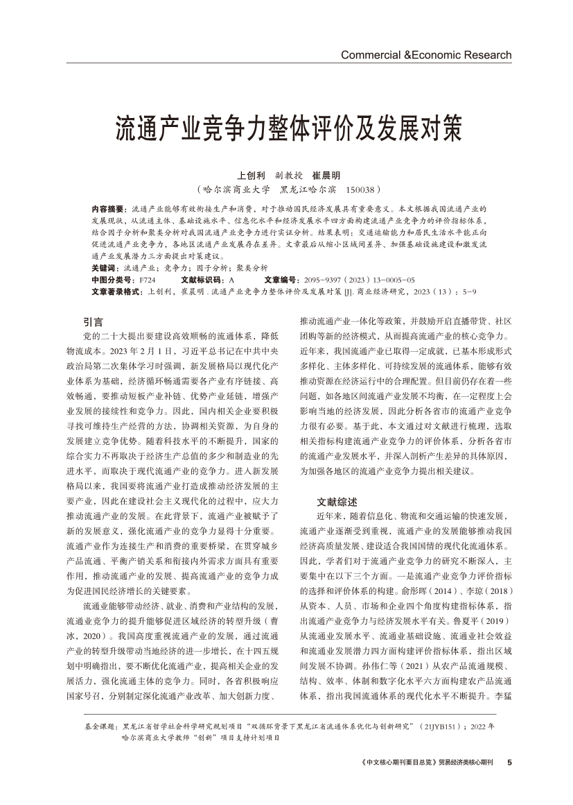 | 流通产业竞争力整体评价及发展对策 |