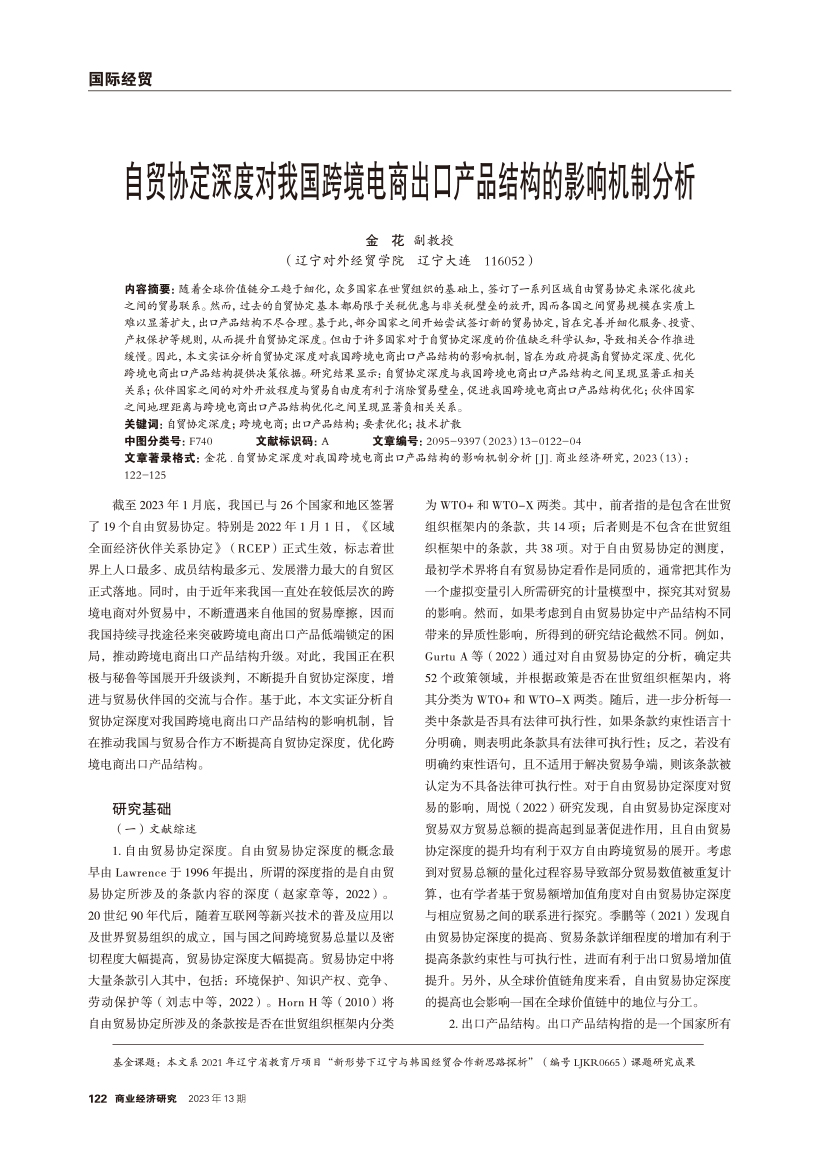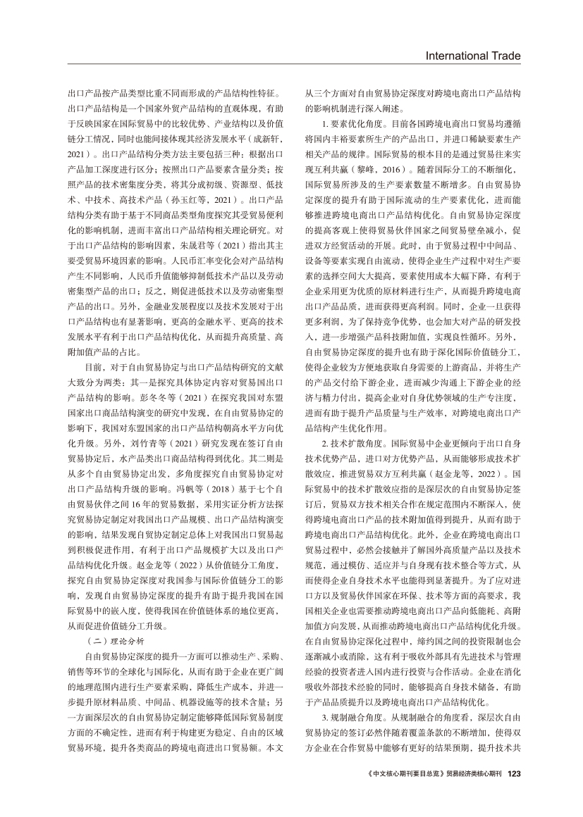 | 自贸协定深度对我国跨境电商出口产品结构的影响机制分析 |