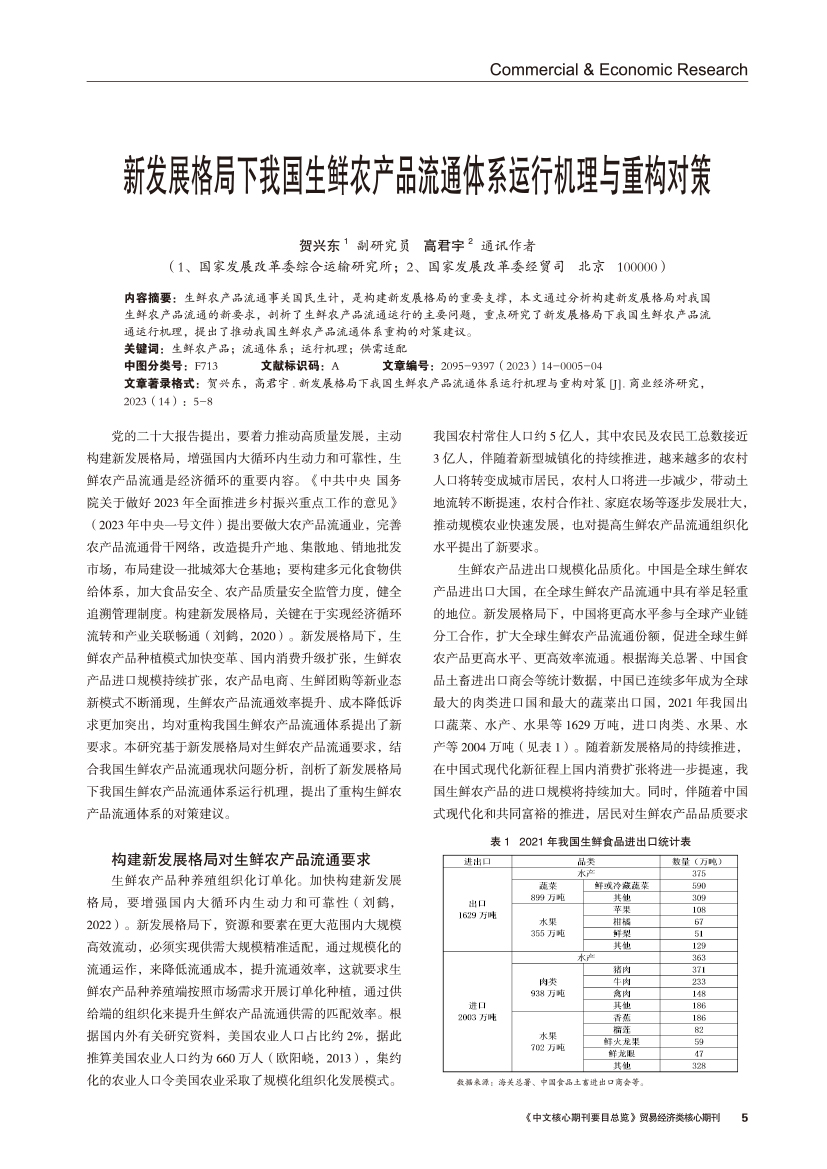 | 新发展格局下我国生鲜农产品流通体系运行机理与重构对策 |