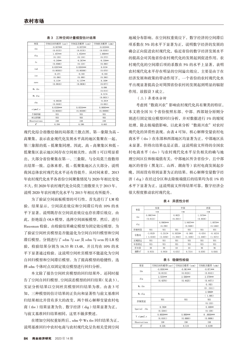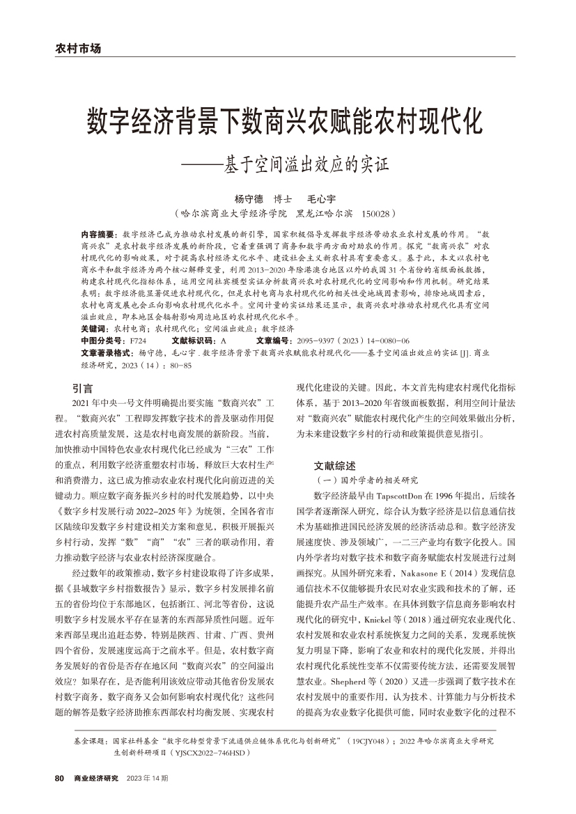 | 数字经济背景下数商兴农赋能农村现代化 ——基于空间溢出效应的实证 |